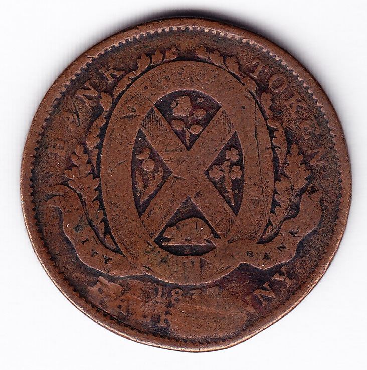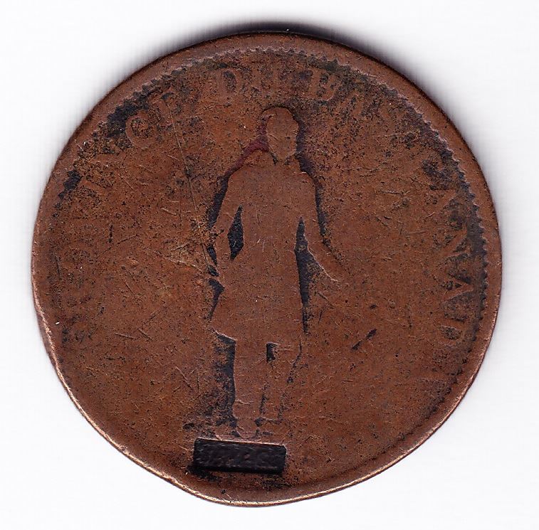 Canadian Countermark - SAVAGE within rectangular cartouche on obv. of City Bank ½ penny, 1837, Br 522 (M.I. 820, Brunk S-142).