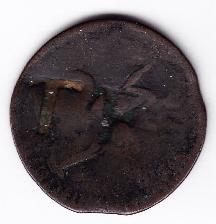 Various speculations have been made concerning the possible issuer of these marks which I have only seen on early (pre-1840) coppers. My most recent notion is that they may represent small change in a lumber camp, and while not provable it seems to me a more tenable suggestion than those previously discussed.