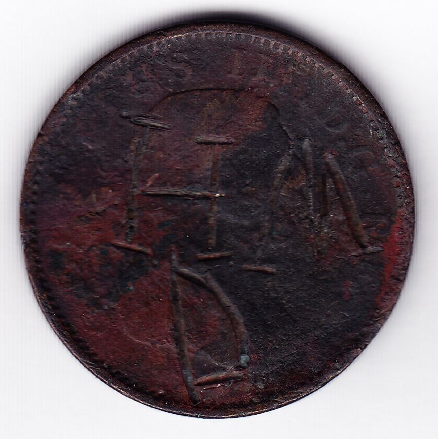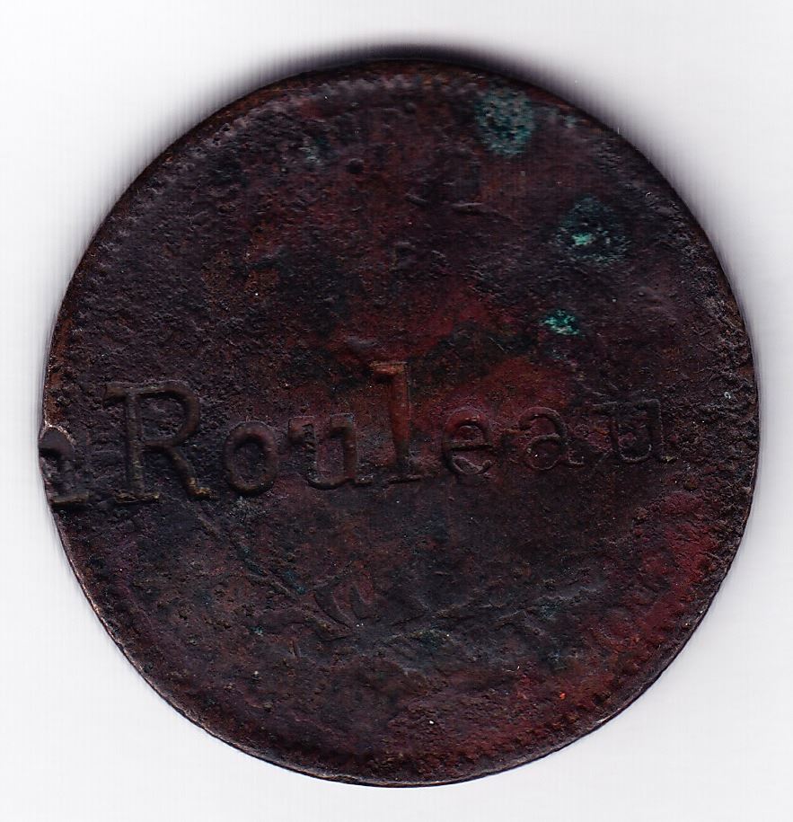 Rouleau countermark on rev. of Essequibo and Demerara stiver, 1813. (M.I. 798, Brunk R-551).