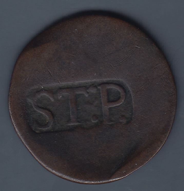This piece is included due to its attribution as a communion token of St. Paul’s Church, Truro, N.S., by Leroux and McLachlan. MacLennan, however, doubted its association with the church, claiming: This one belongs to St. Pierre, West Indies and has been so identified beyond doubt by Mr. L. A. Renaud of Montreal and Mr. Kain of St. John, N.B., well known collectors. Howland Wood noted it as belonging to St. Pierre, Martinique, but Pridmore ignored the piece. An article in the Perth Courier for December 1, 1960, refers to the discovery in a garden in Perth of what is presumably one of these pieces: A typical token was one bearing the date 1774, minted during the reign of George III. Sam Larmon, Perth R.R. 4, found it in his garden and brought it to The Courier office. Unfortunately the coin was badly worn and had evidently been disfigured by some person with the initials S.T.P., for these letters were crudely carved into its face. It appears, however, that even in good condition the coin would be worth only a dollar or two. (Marked Impressions).