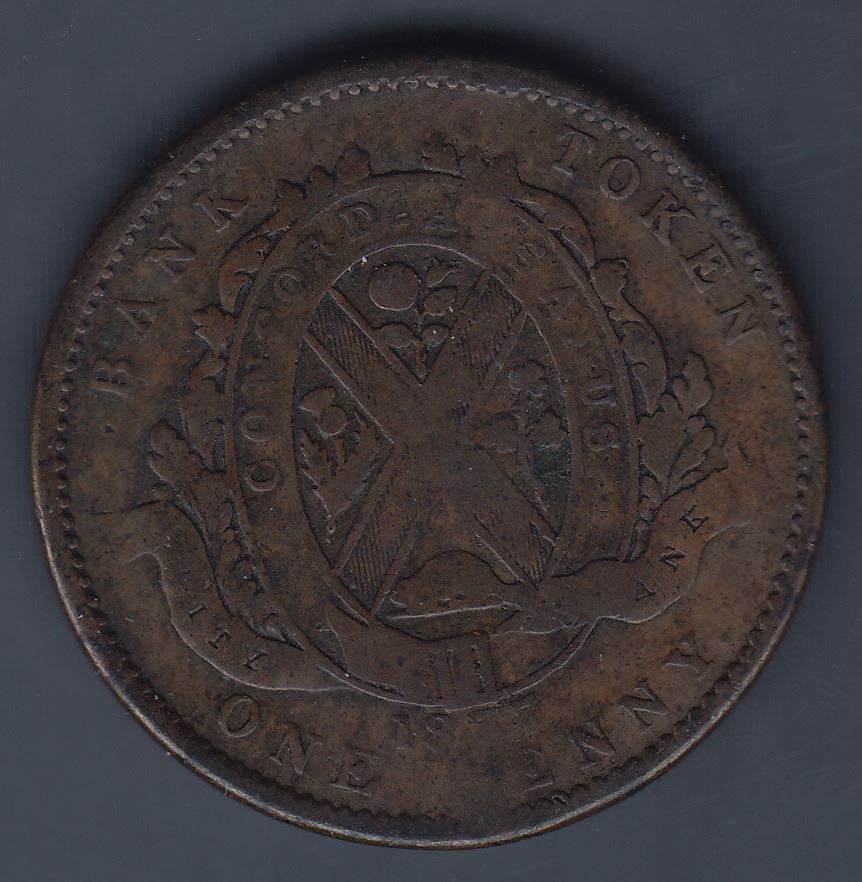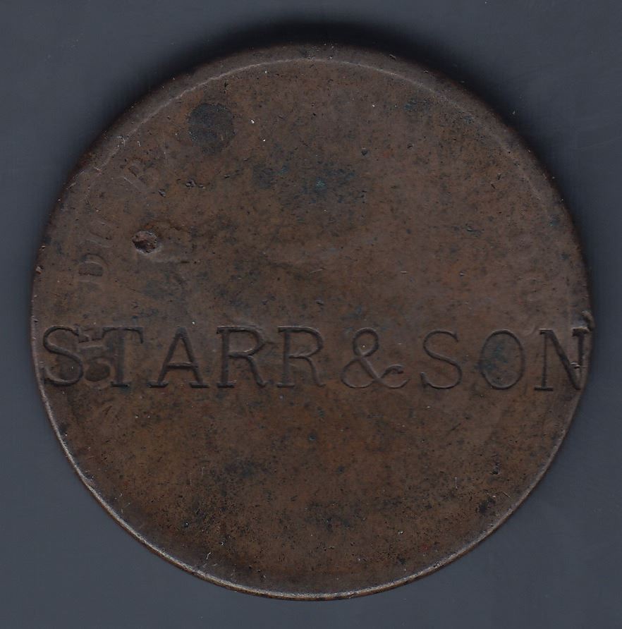 STARR & SON on obv. of City Bank penny, 1837, Br 521 (M.I. 856, Brunk S-871 for D. Starr & Son).