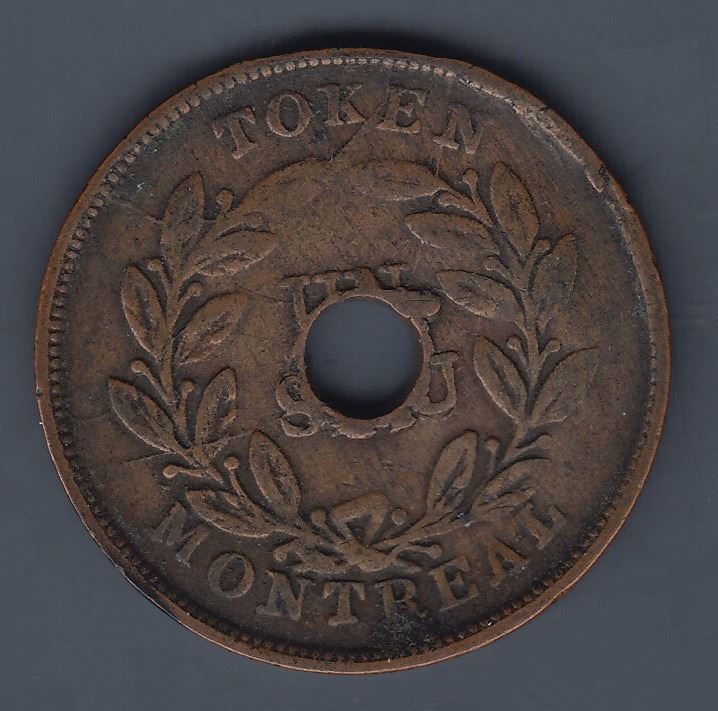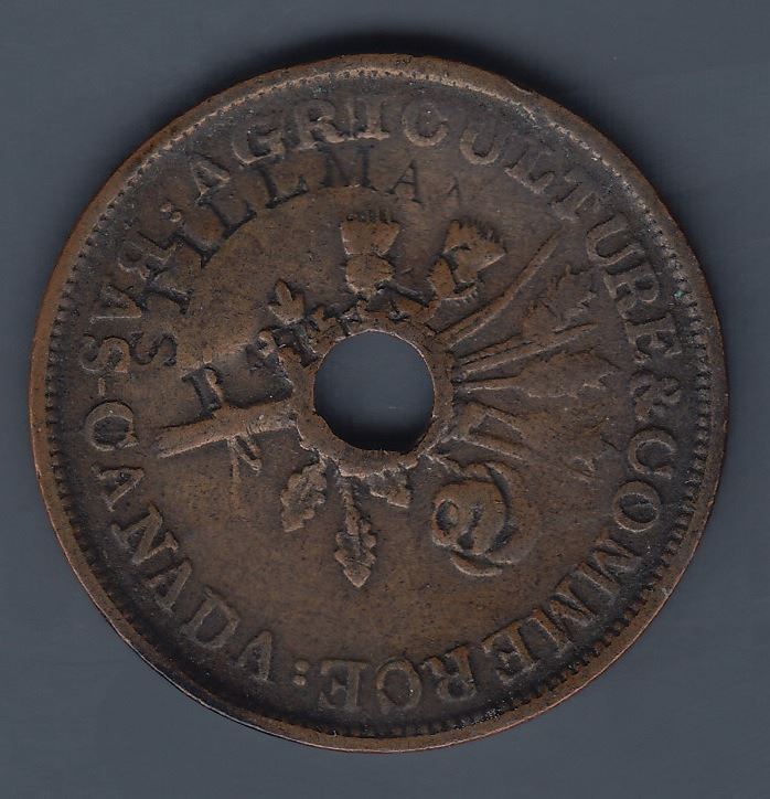 STILLMAN (curved) / PATENT on obv. of Bouquet-Sou, Br 691 (M.I. 861, Brunk S-982). Piece holed.