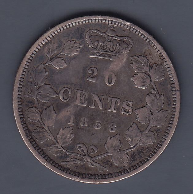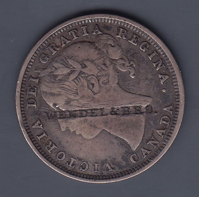 WENDEL & BRO. on obv. of Province of Canada 20¢, 1858 (Brunk W-390).