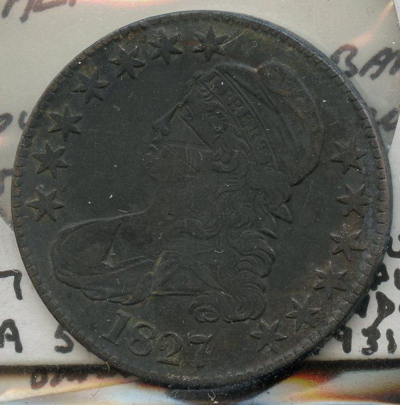 T.W on obv. of U.S. 50¢, 1827 (M.I. 905).