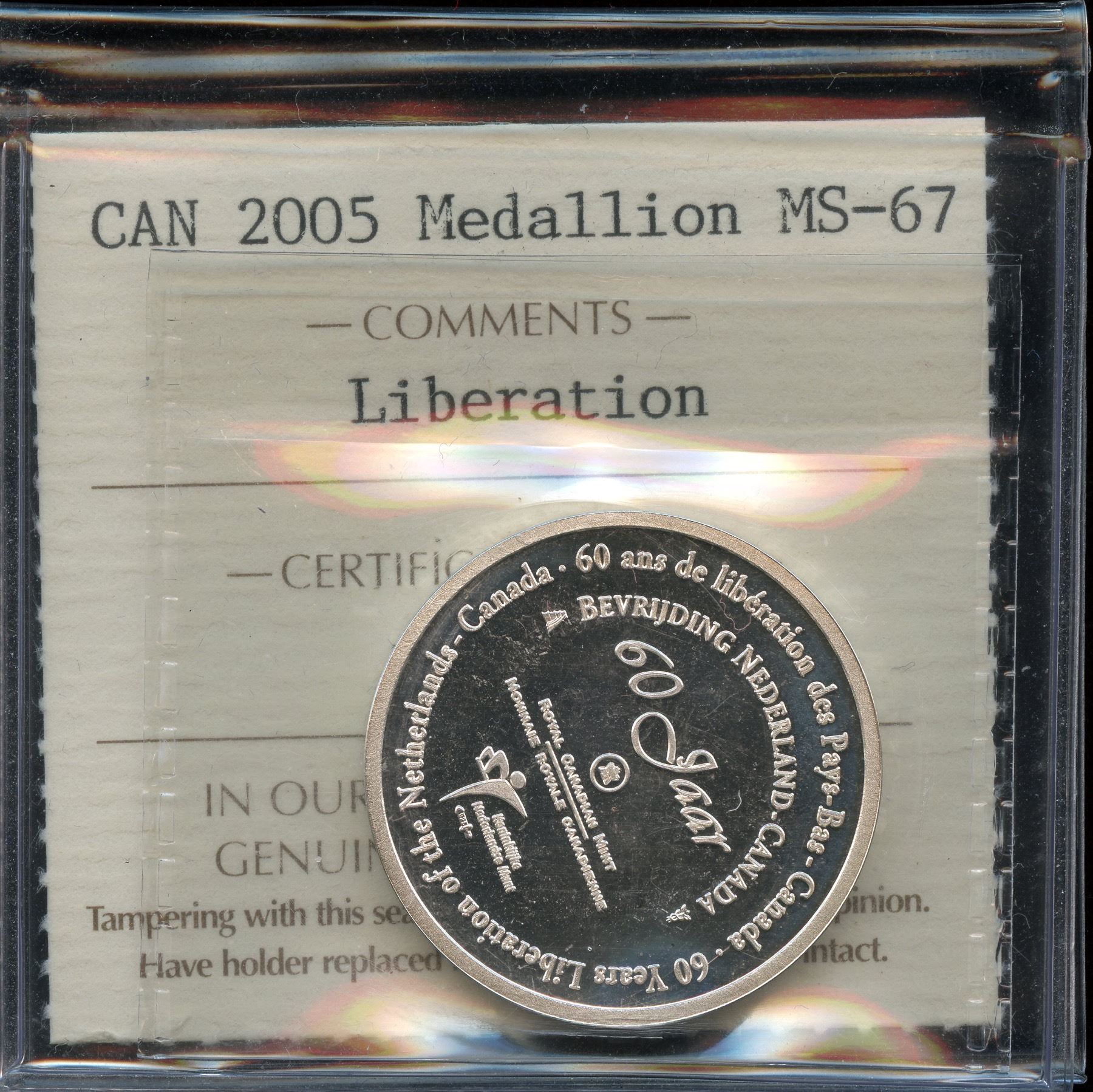 The Canadian-Dutch joint set celebrating the Liberation of the Netherland in 1945 offered a unique opportunity for the Royal Canadian Mint to show its technical capabilities to the European market. Having already issued selective plating and circulation colourized coins, for this set the RCM experimented something never done before: photo etched coins. A probably unique trial piece (CH DC-41) struck on a traditional uniface test token piece was produced, exhibiting in the obverse the photo etching of a stock picture of a young girl. With the success of the production of the trial piece, the medallion was produced using the same technique.