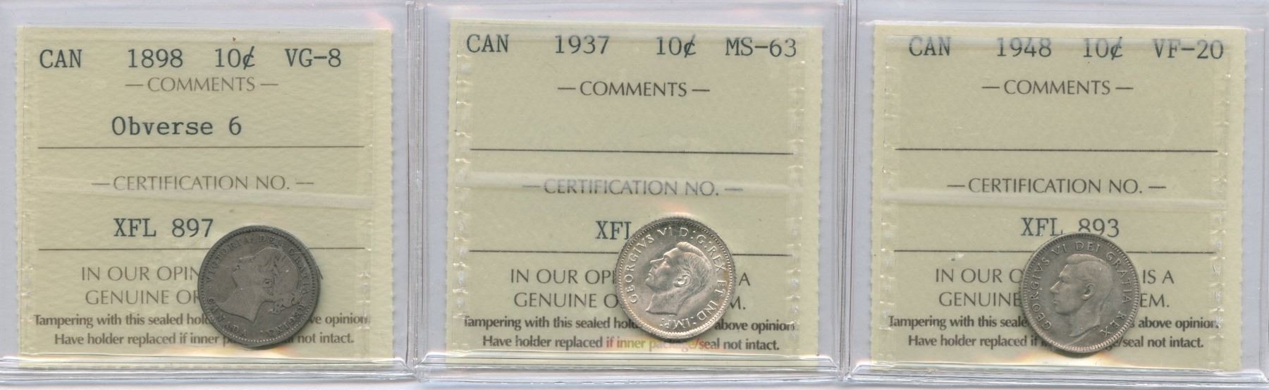 Includes: 1898 VG-8, obverse 6. 1937 MS-63. 1948 VF-20. 3 pcs.