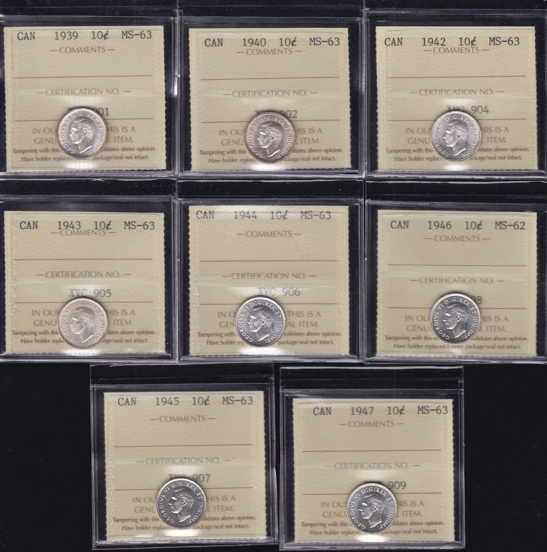 Includes: 1939 MS-63. 1940 MS-63. 1942 MS-63. 1943 MS-63. 1944 MS-63. 1945 MS-63. 1946 MS-62. 1947 MS-63. 8 Pcs.