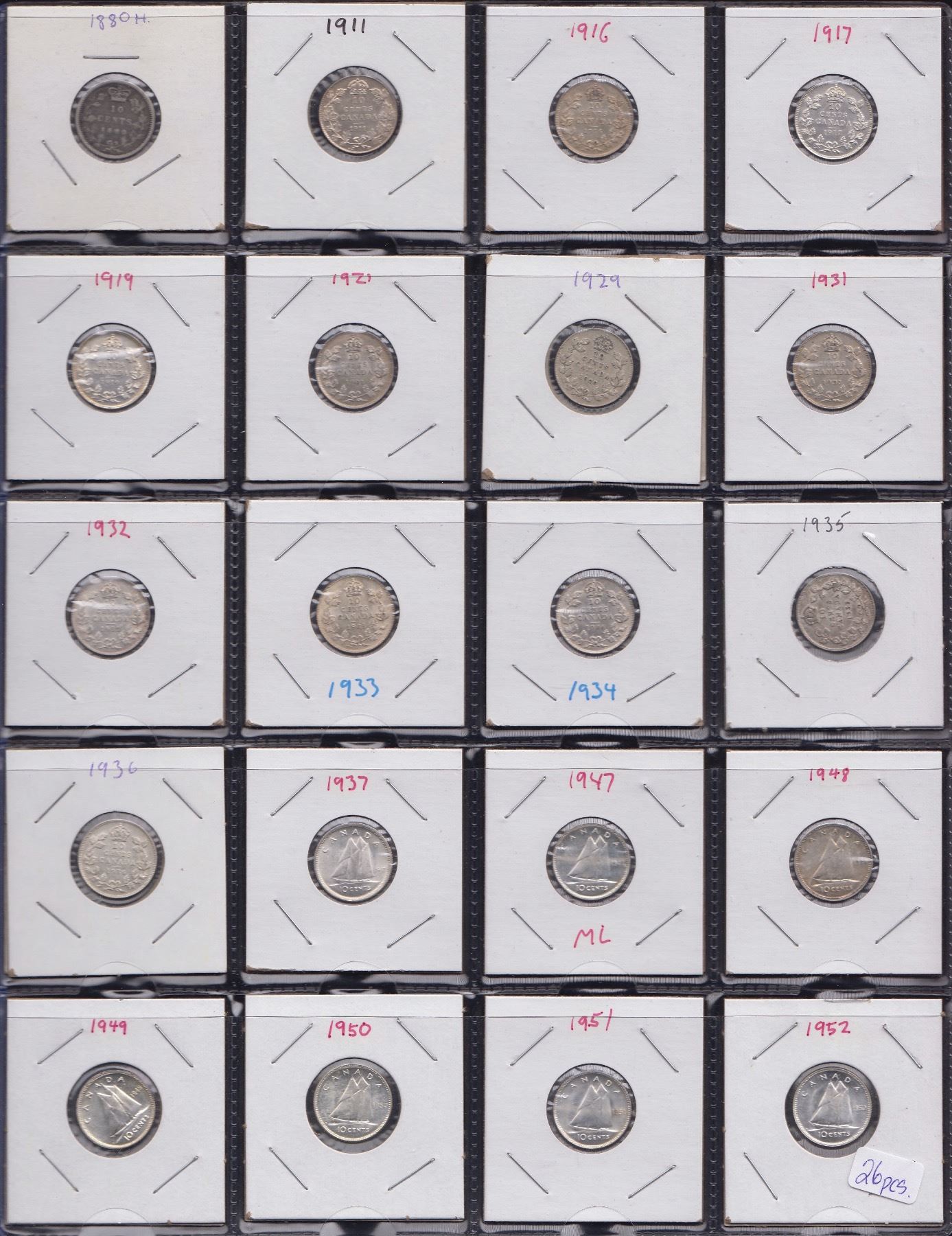 Includes 1880H through 1956 with no duplication. Conditions vary, there are some nice Unc coins. 26 Pcs.