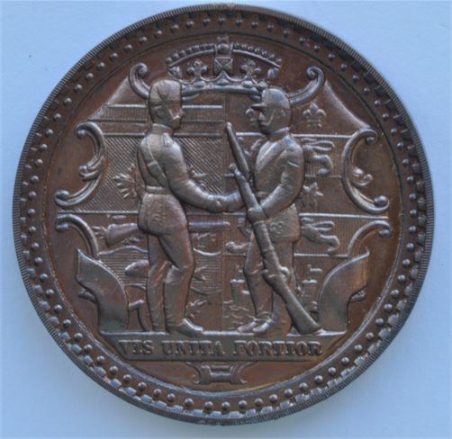 Dominion of Canada Rifle Association AE, 44mm, obv. Two soldiers meeting and shaking hands, rev. Dominion of Canada Rifle Association Cadet Competition Won By, Unc. 42.1gms.