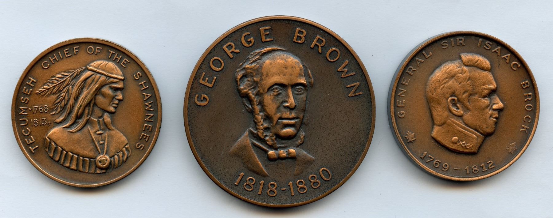 Produced by Wellings Mint: Sir Isaac Brock & Tecumseh Bronze Pair & George Brown, 1967. Bronze 84.68gms, in original cases. 3 pcs.