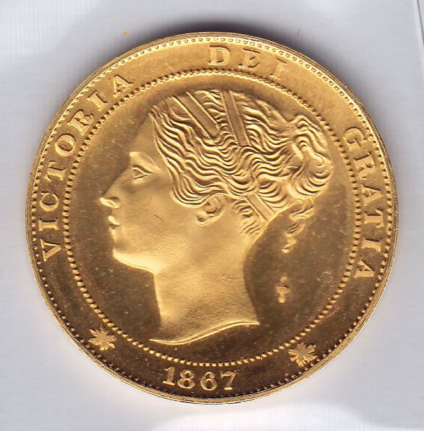 Struck by McTavish Metal Co, Produced for Rothesay Pulp and Paper in 1967. Obv. Queen Victoria, Rev. crest of Canada. Proof quality, 6.9 gms, .200 AGW.