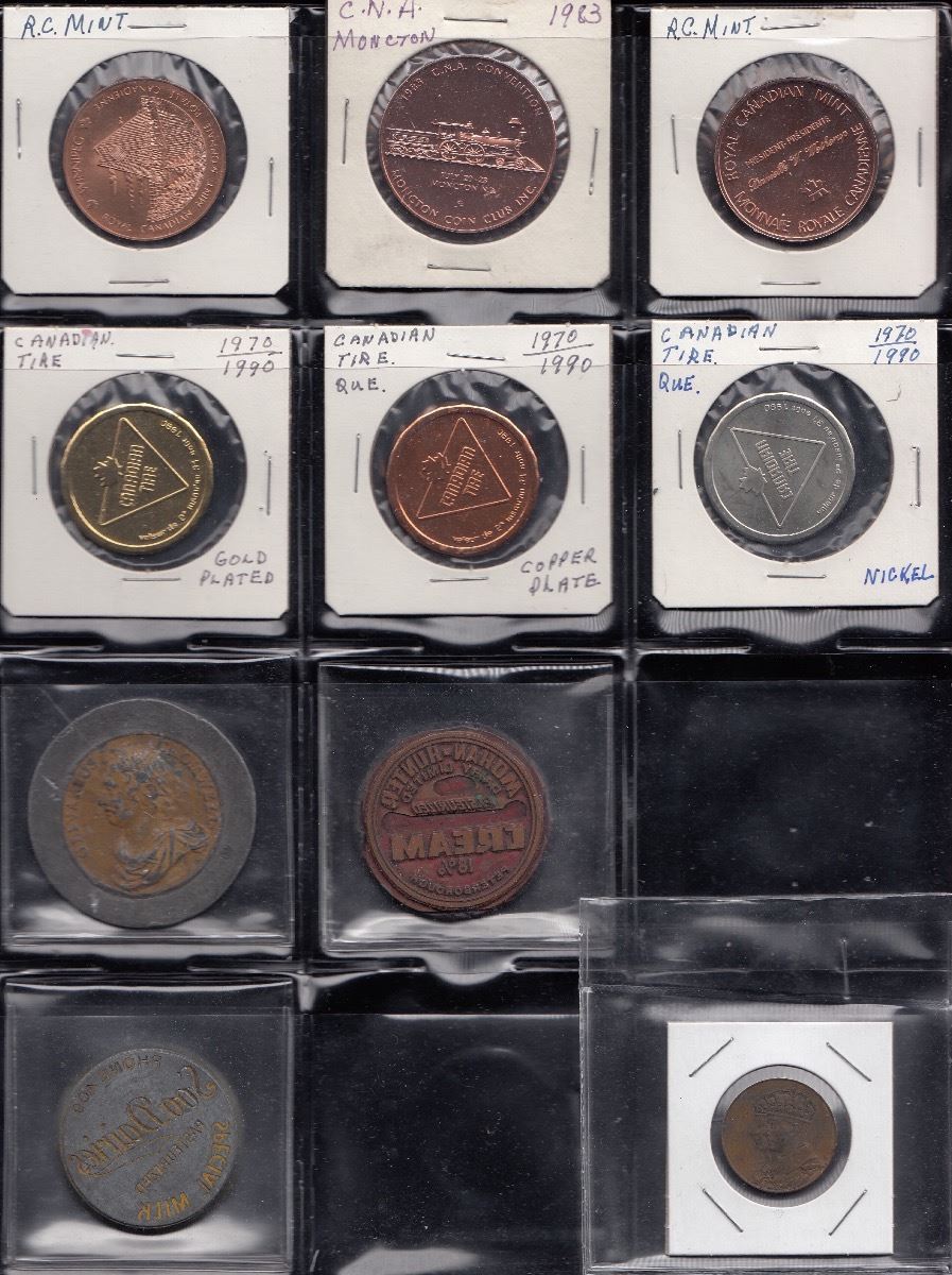 Canadian Tire, 1970-1990, 1983 Moncton CNA, copper,2 1927 Canadian Royal Visit school medals, 4 1939 Royal Visit school medals, 1967 Centennial school medal, Royal Lifesaving to R.F. Good, June, 1958,