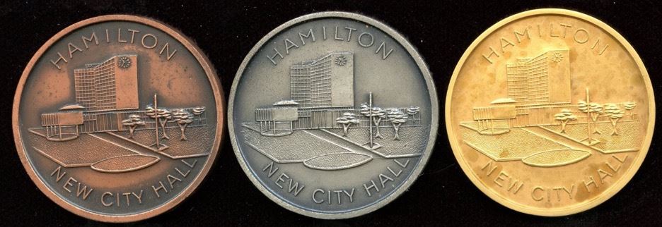 Canadian Numismatic Association - Hamilton, 1961, set of three, gold-filled, silver and bronze in case of issue.