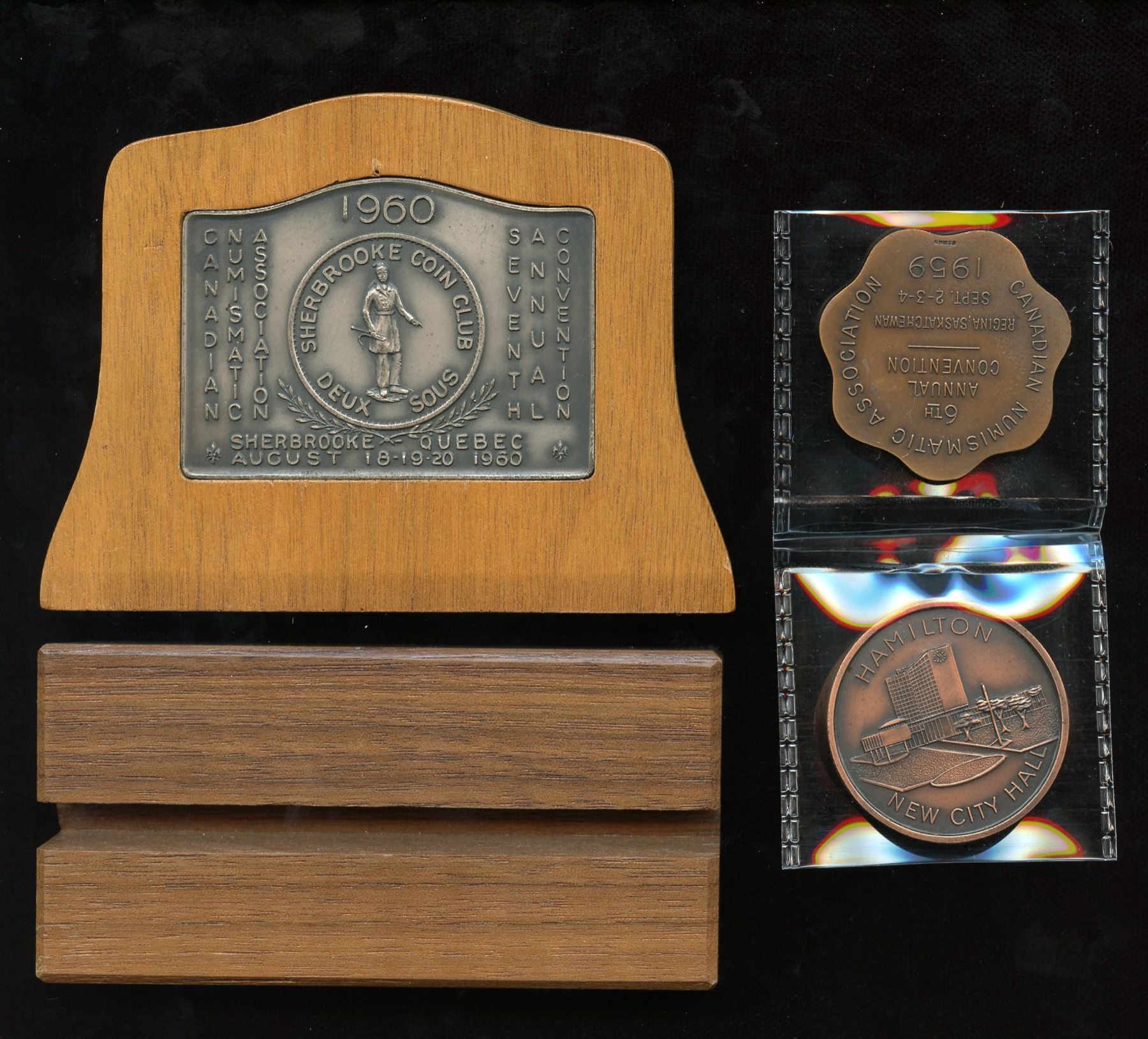 Regina, 1959, bronze, 275 issued; Sherbrooke, 1960, silver, 48 issued with stand; Hamilton, 1961, bronze, 810 issued. 3 Pcs.