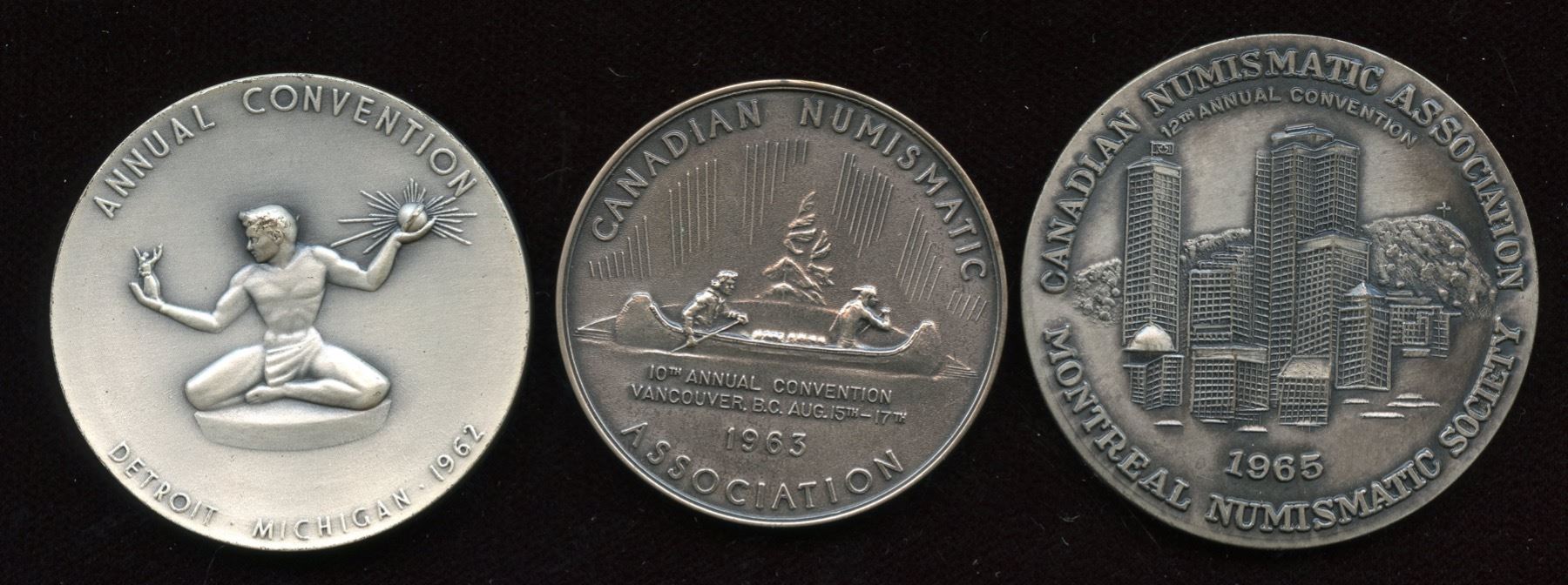 Detroit, 1962, silver, 1000 issued; Vancouver, 1963, silver, 181 issued; Montreal, 1965. silver, 287 issued. 3 Pcs.