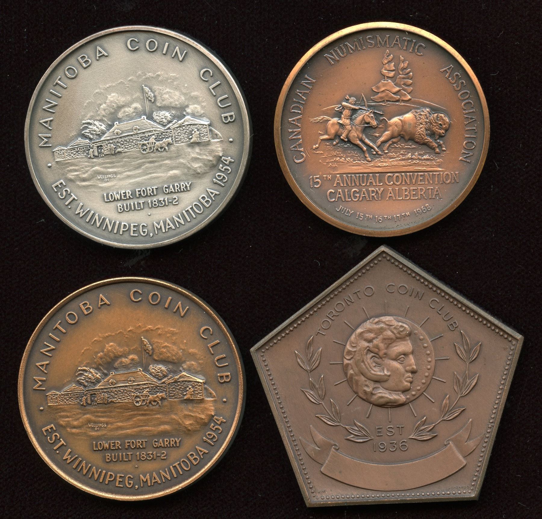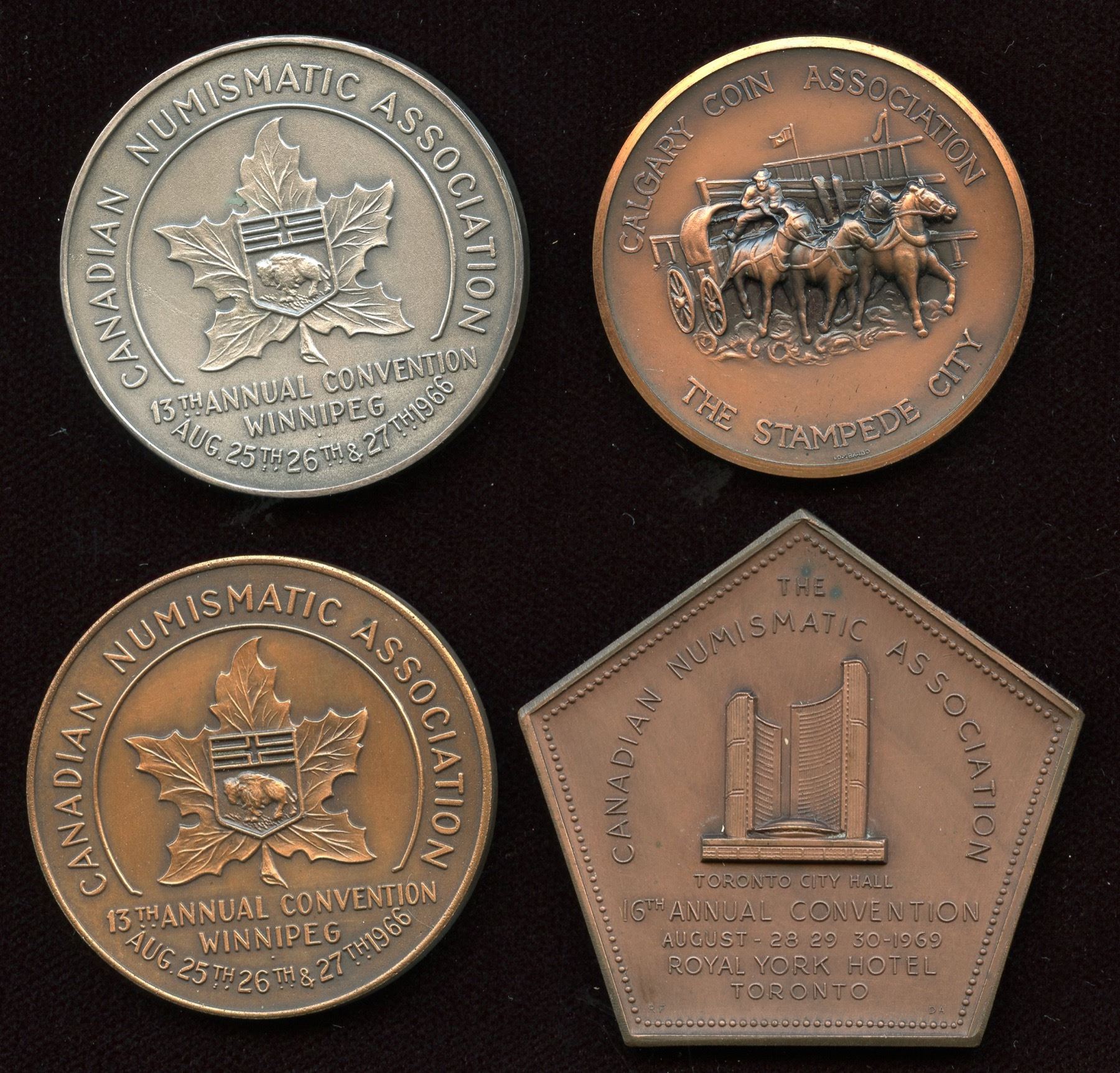 Winnipeg, 1966, silver, 125 issued; Winnipeg, 1966, bronze, 500 issued; Calgary, 1968, bronze, 1000 issued; Toronto, 1969, bronze, 980 issued. 4 Pcs.