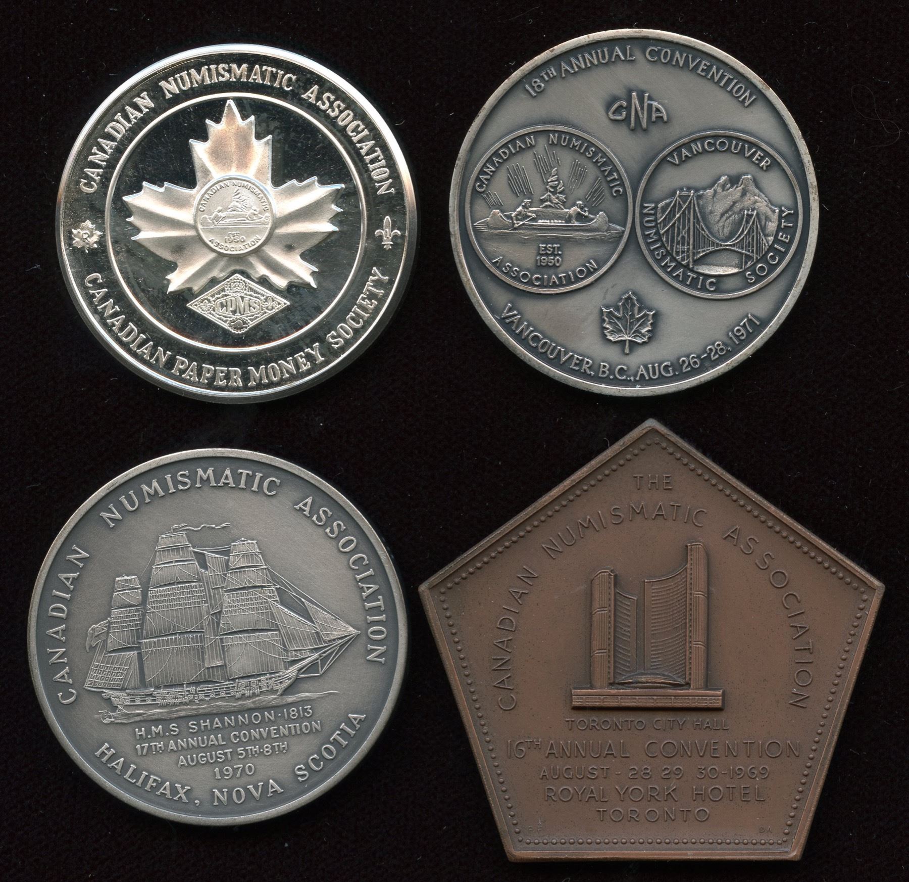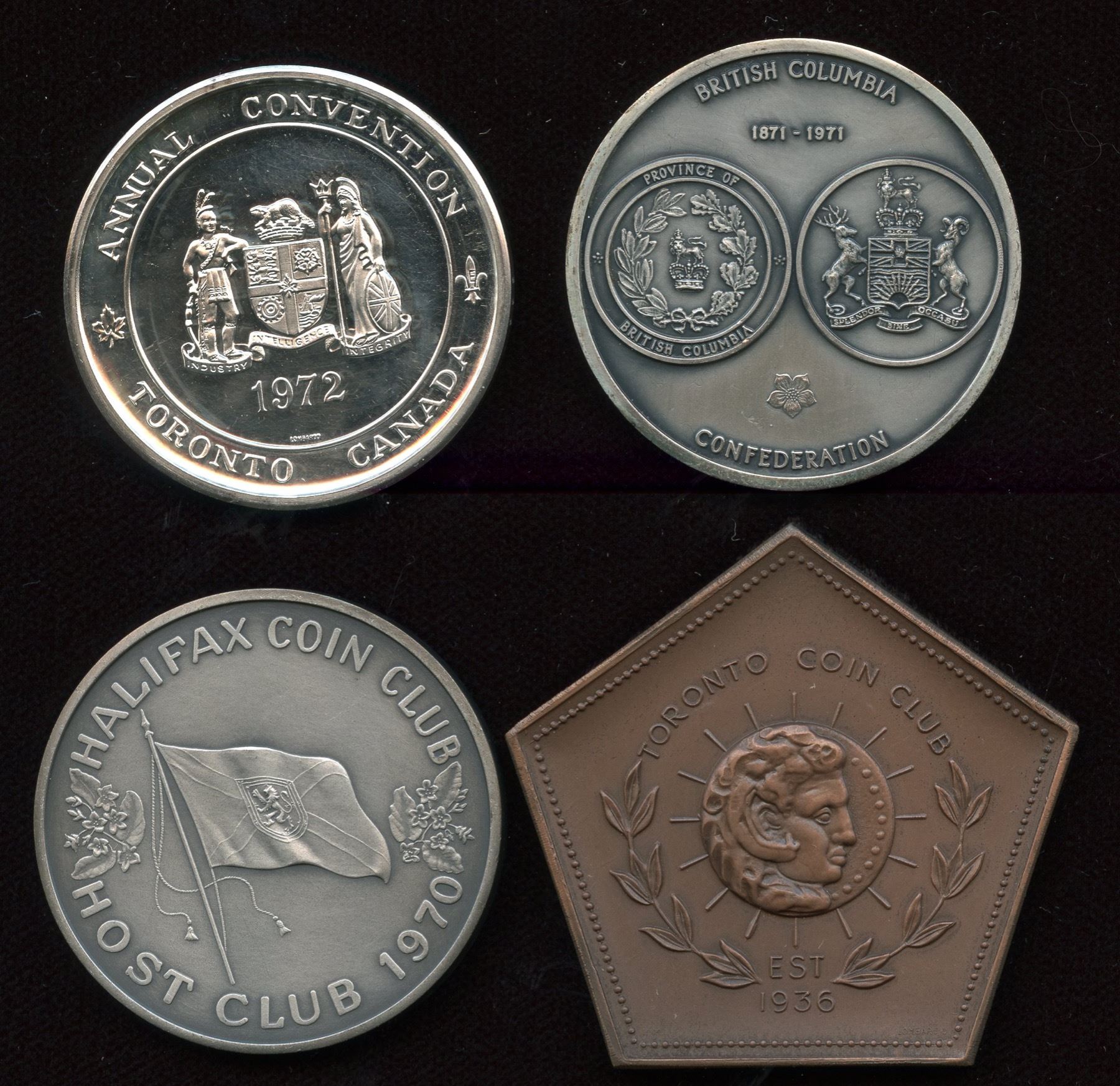 Toronto, 1969, bronze, 980 issued; Halifax, 1970, silver, 151 issued; Vancouver, 1971, silver, 121 issued; Toronto, 1972, silver, 150 issued. 4 Pcs.