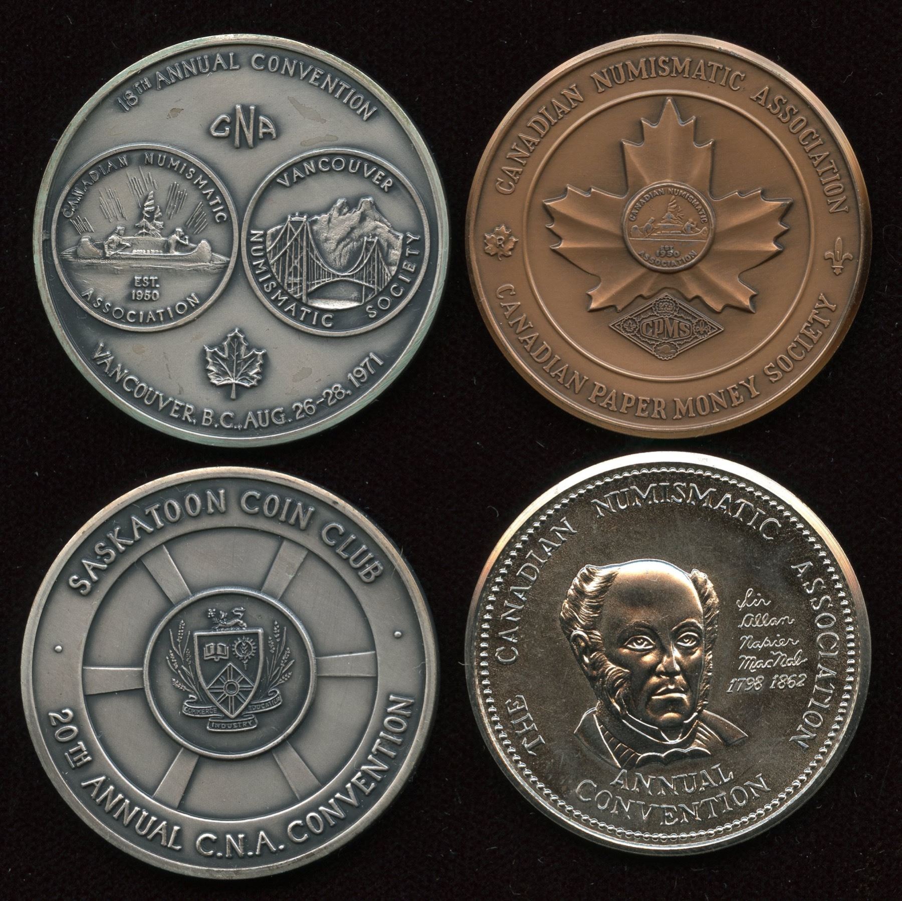 Vancouver, 1971, silver, 121 issued; Toronto, 1972 bronze, 400 issued; Saskatoon, 1973, silver, 110 issued; Hamilton, 1974, silver, 95 issued. 4 Pcs.