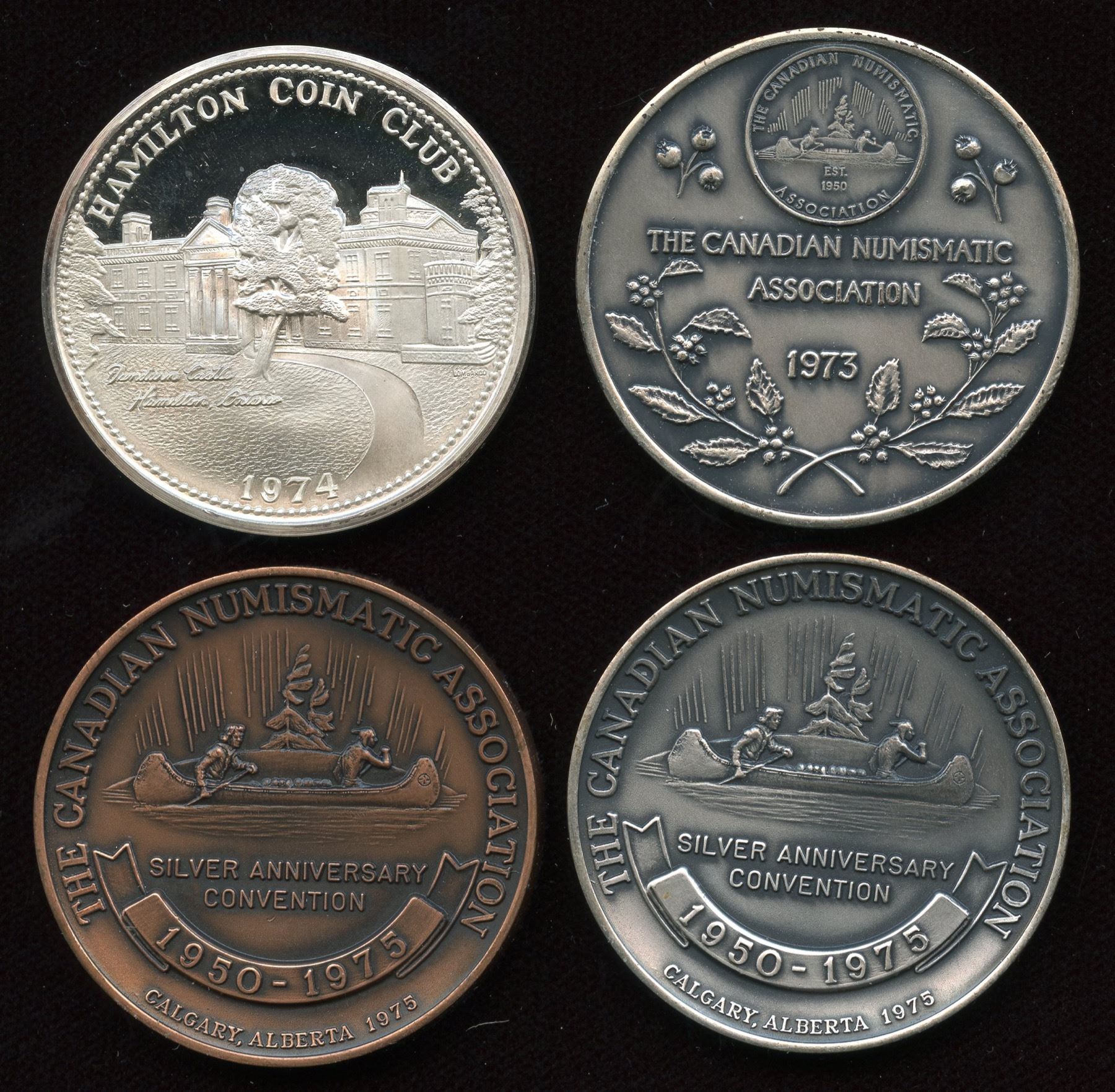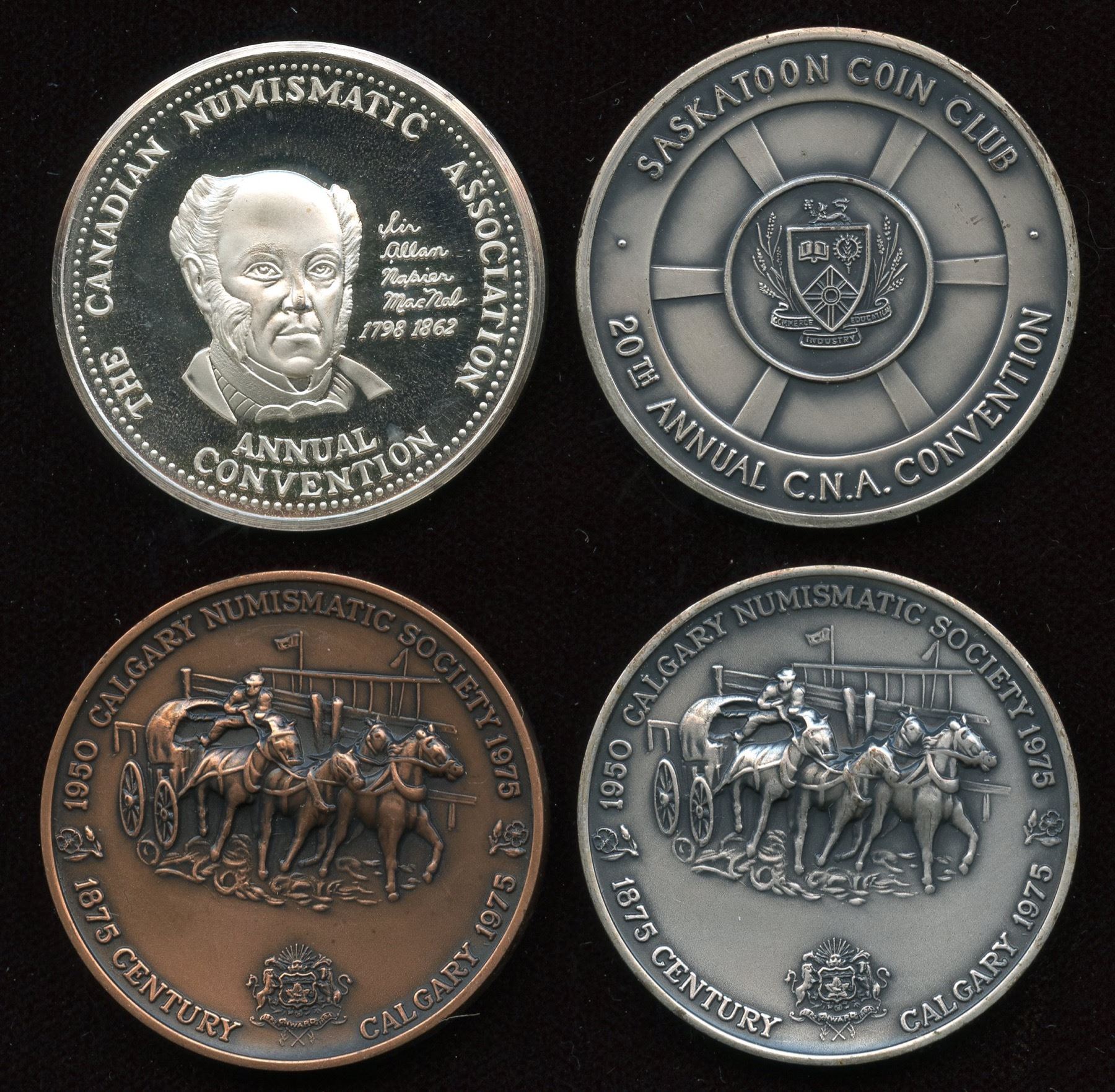 Saskatoon, 1973, silver, 110 issued; Hamilton, 1974, silver, 95 issued; Calgary, 1975, bronze, 750 issued; Calgary, 1975, silver, 150 issued. 4 Pcs.