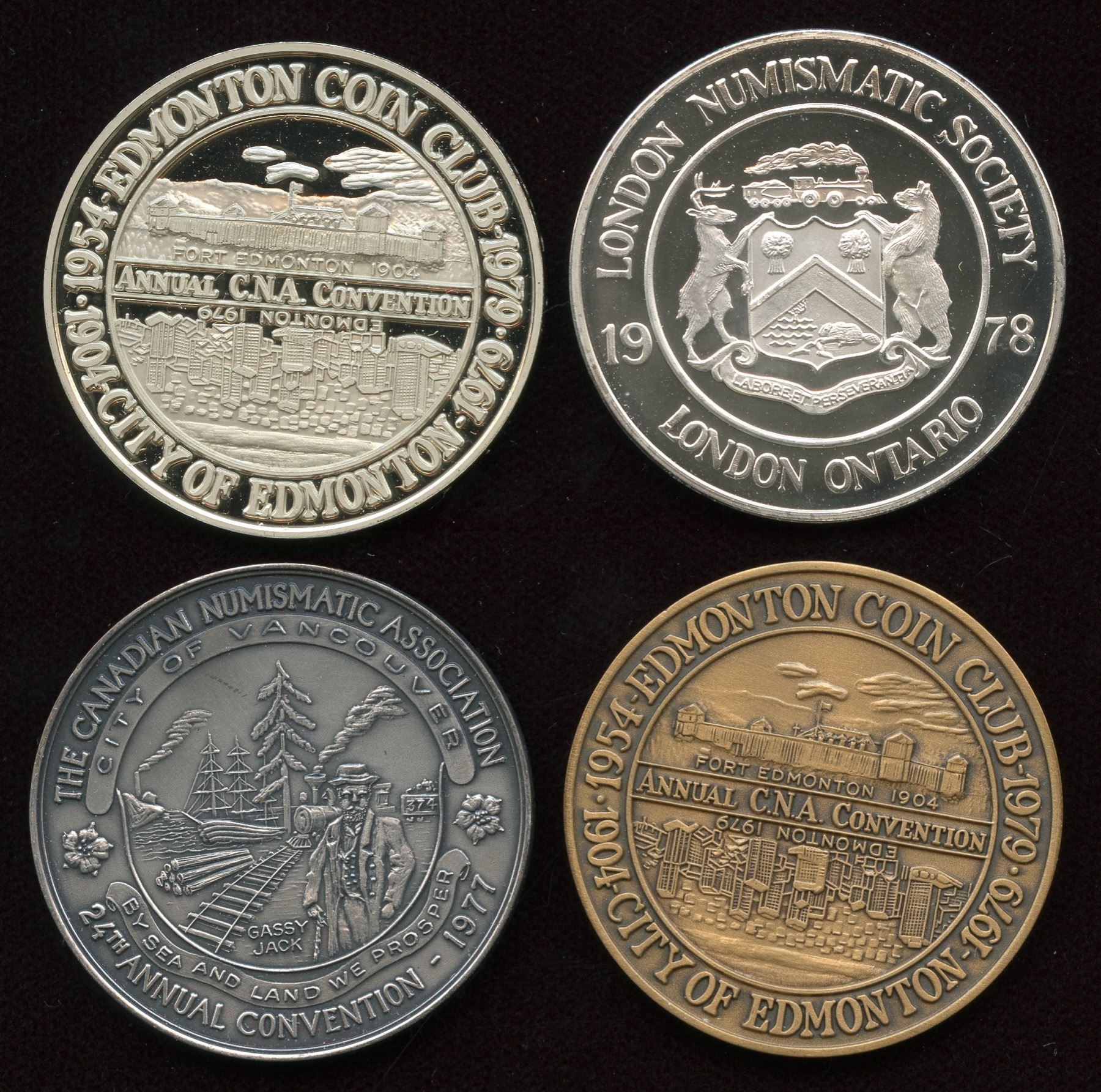Vancouver, 1971, silver, 121 issued; London, 1978, silver, 75 issued; Edmonton, 1979, silver, 100 issued; Edmonton, 1979, bronze, 250 issued. 4 Pcs.