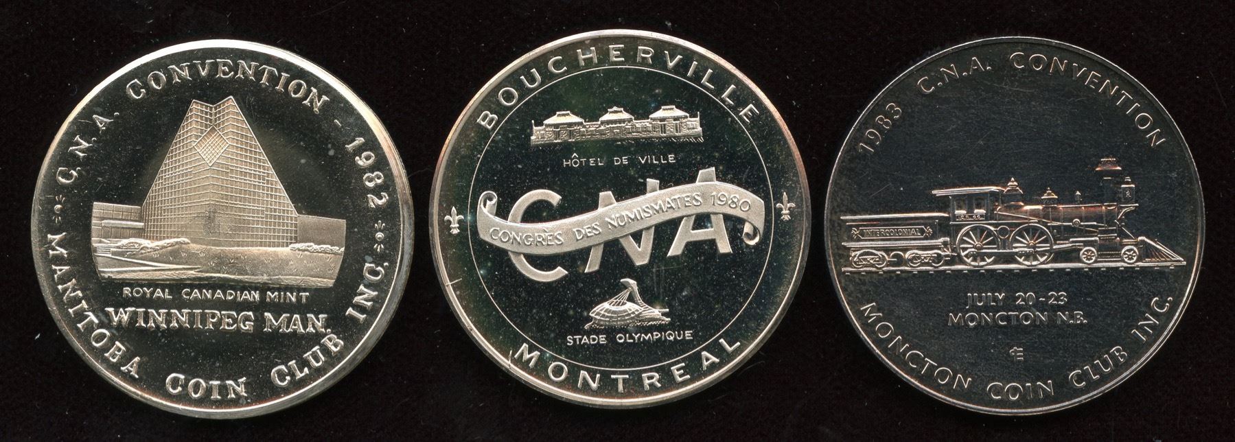 Montreal, 1980, silver, 54 issued; Winnipeg, 1982, silver, 64 issued; Moncton, 1983, silver, 100 issued. 3 Pcs.
