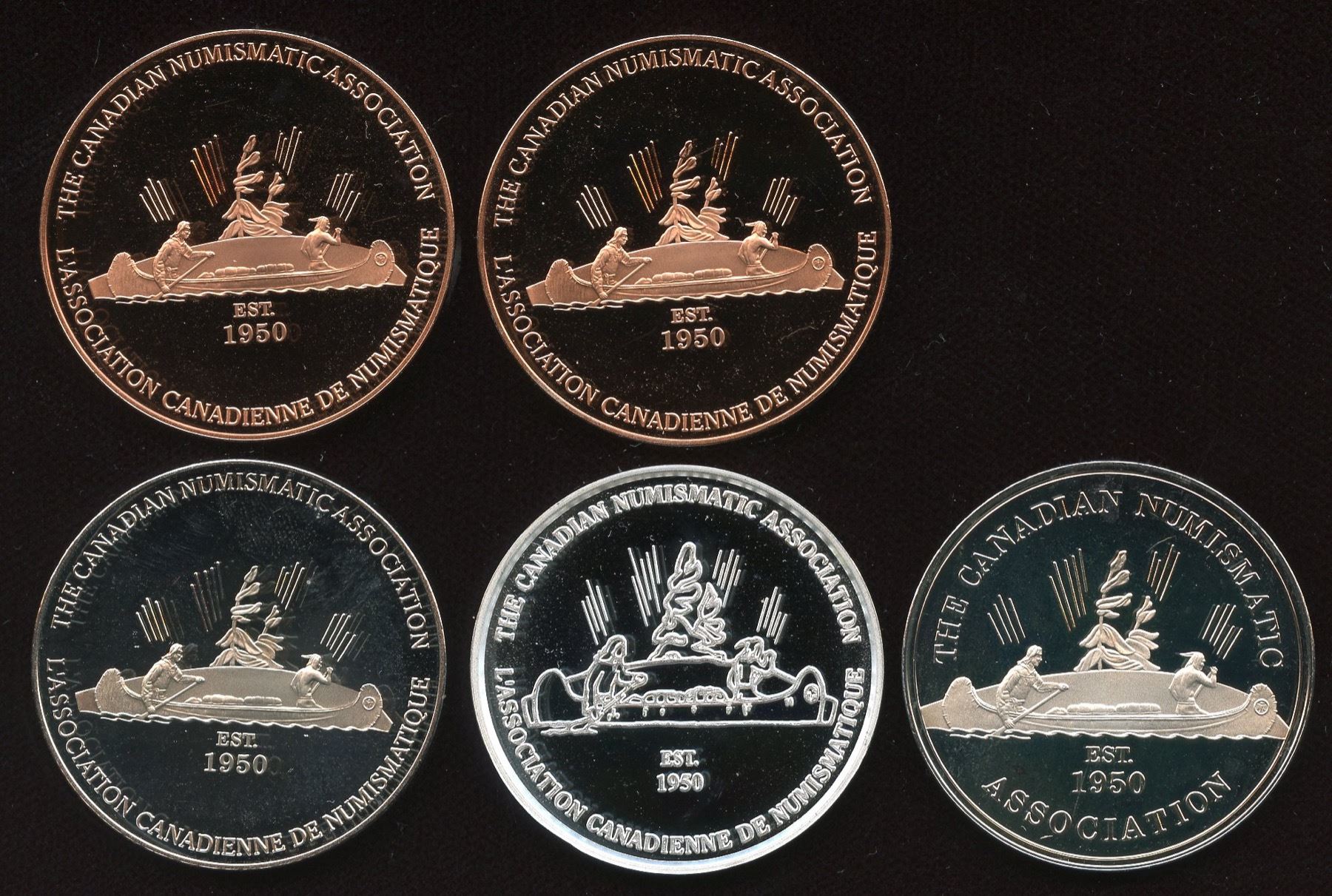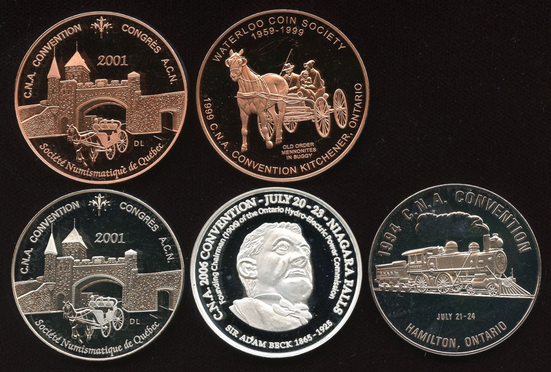Hamilton, 1994, silver, 80 issued; Kitchener, 1999, copper; Quebec City, 2001, silver, 70 issued; Quebec City, 2001, copper, 200 issued; Niagara Falls, 2006, silver, 75 issued. 5 Pcs.