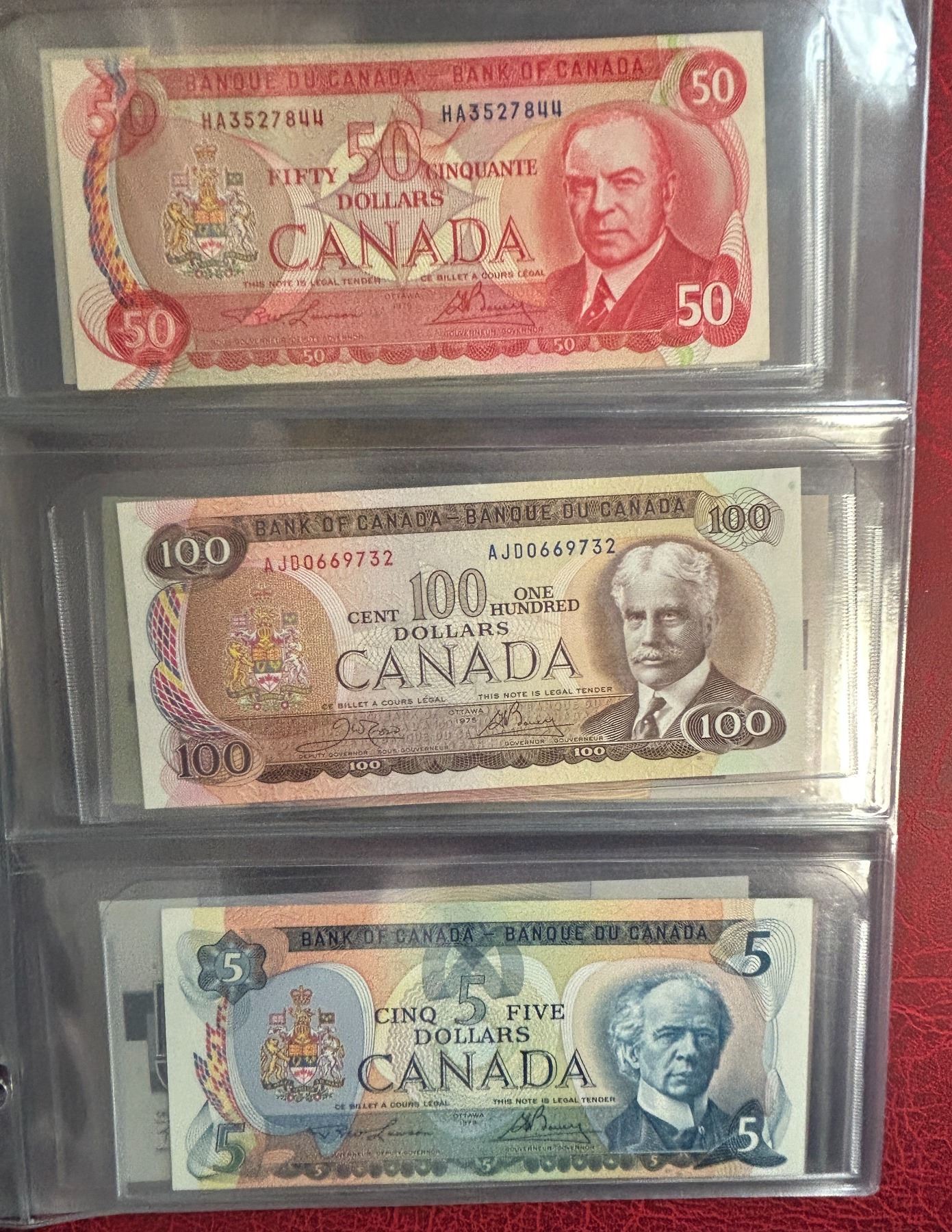 Collection of 38 notes in a beautiful Lighthouse binder and sheets. Original cost of the collection was $2795 + tax, and will be a great start to your own collection. Notes are in very nice to uncirculated condition, and very presentable. Face value $978.