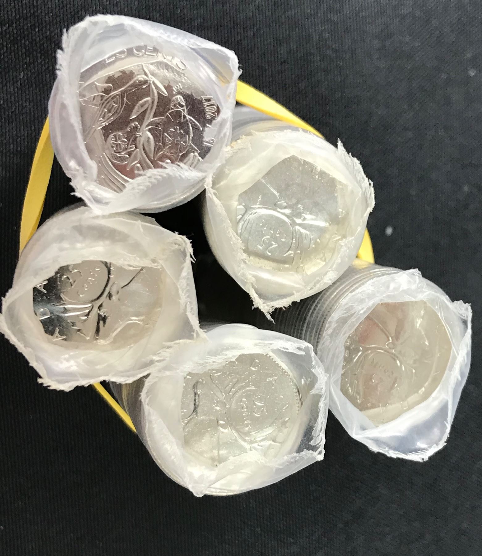 5 Roll Lot - Canadian Coin Rolls: 25¢ "2017", "2004", "2006", "1990 x2". 5 Pcs.