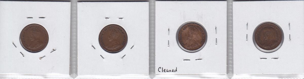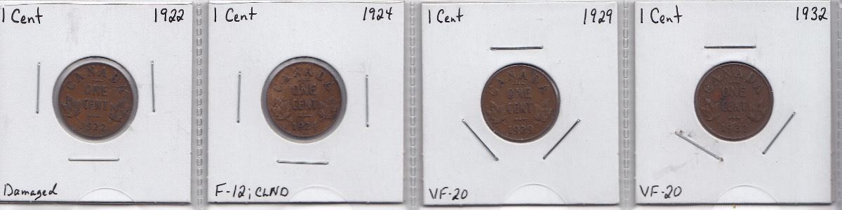 Canadian Small Cent Lot - with KEY DATES - 1922, 1924, 1929, 1932. Various grades and condition, Viewing is recommended. 4 Pcs.