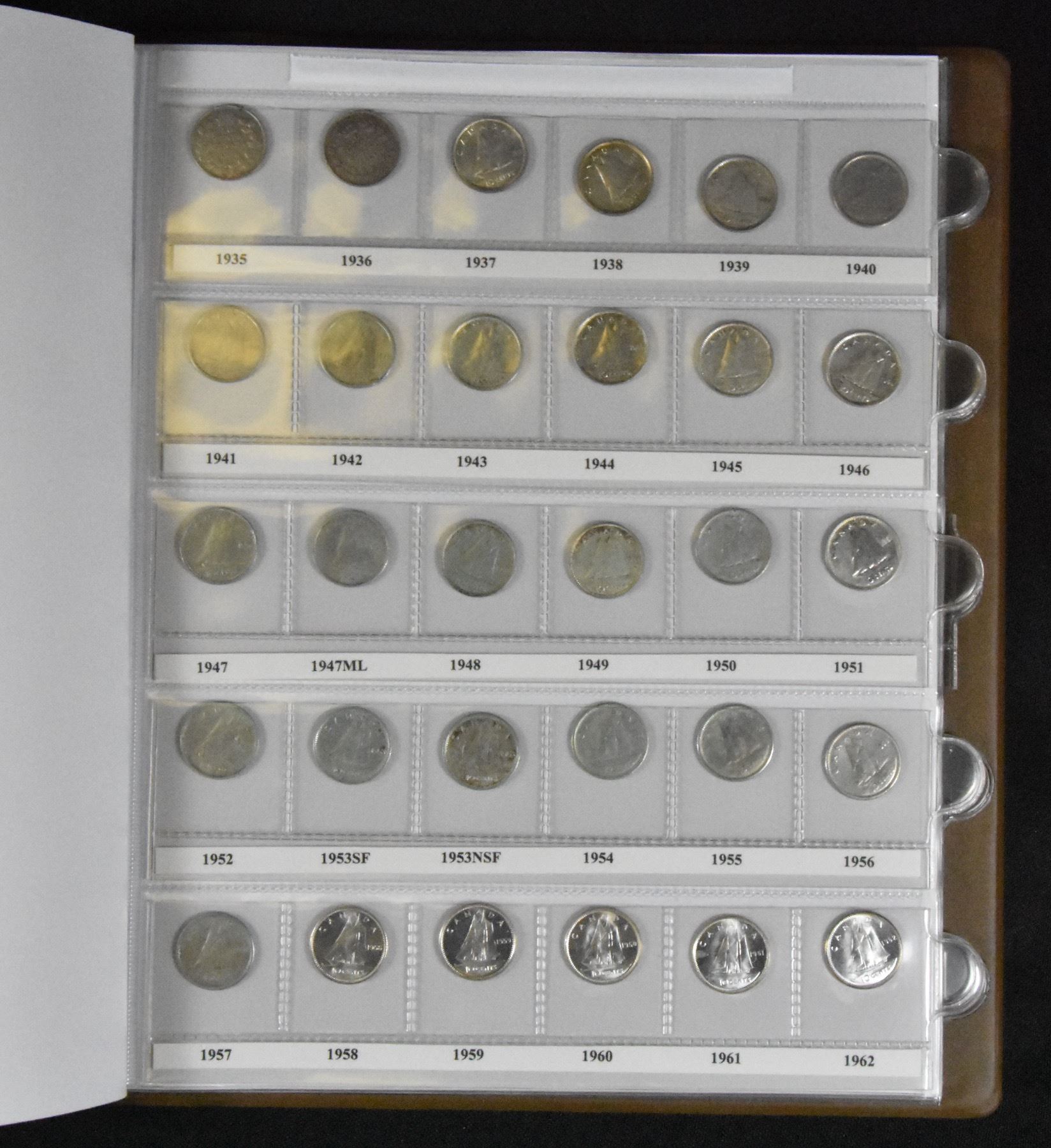 Nice book with 64 silver dimes and 40 nickel examples. Many are uncirculated and should be viewed.