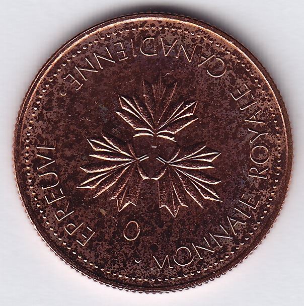 Twenty Five Cents CH TT-25.15A Round, three maple leaves (1983), raised O on obv. & rev. Copper, 23.75mm diameter, 1.54mm thickness, 5.06gms.