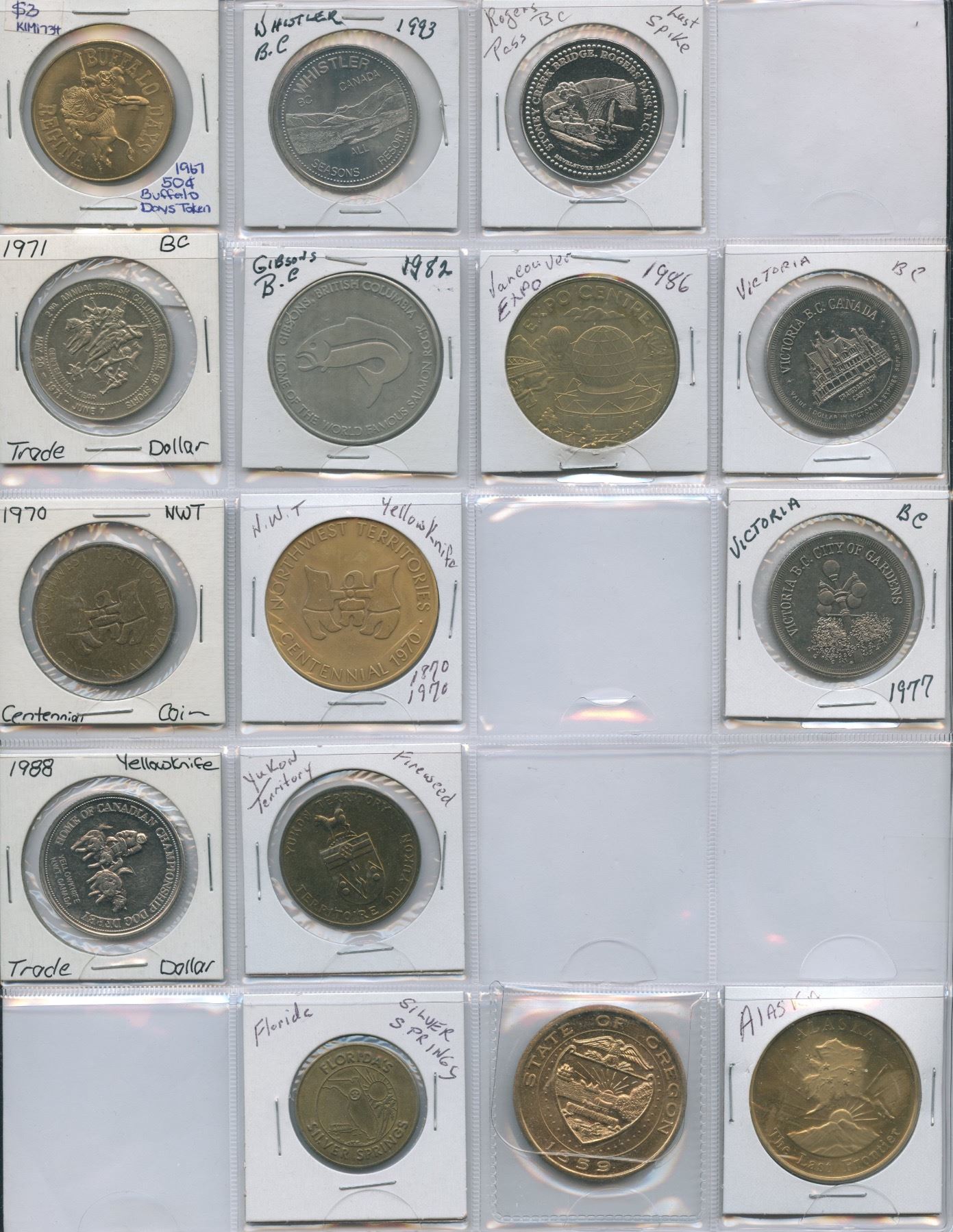 An assortment of trade dollars from representing provinces from across Canada. A worthy lot not to miss. A great assortment over 3 lbs.