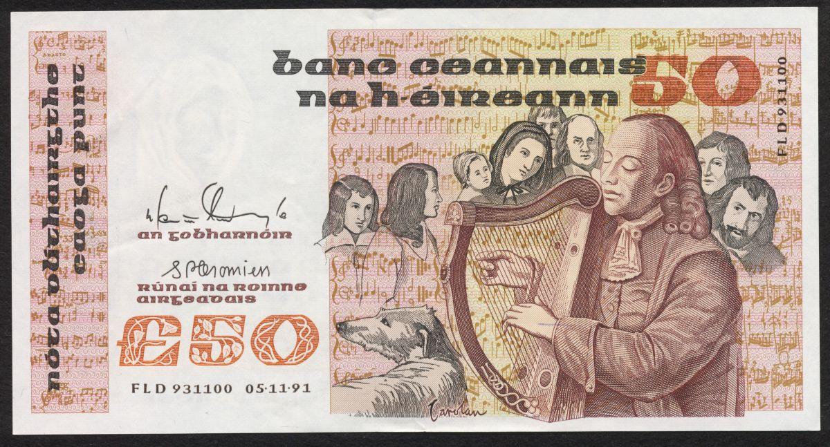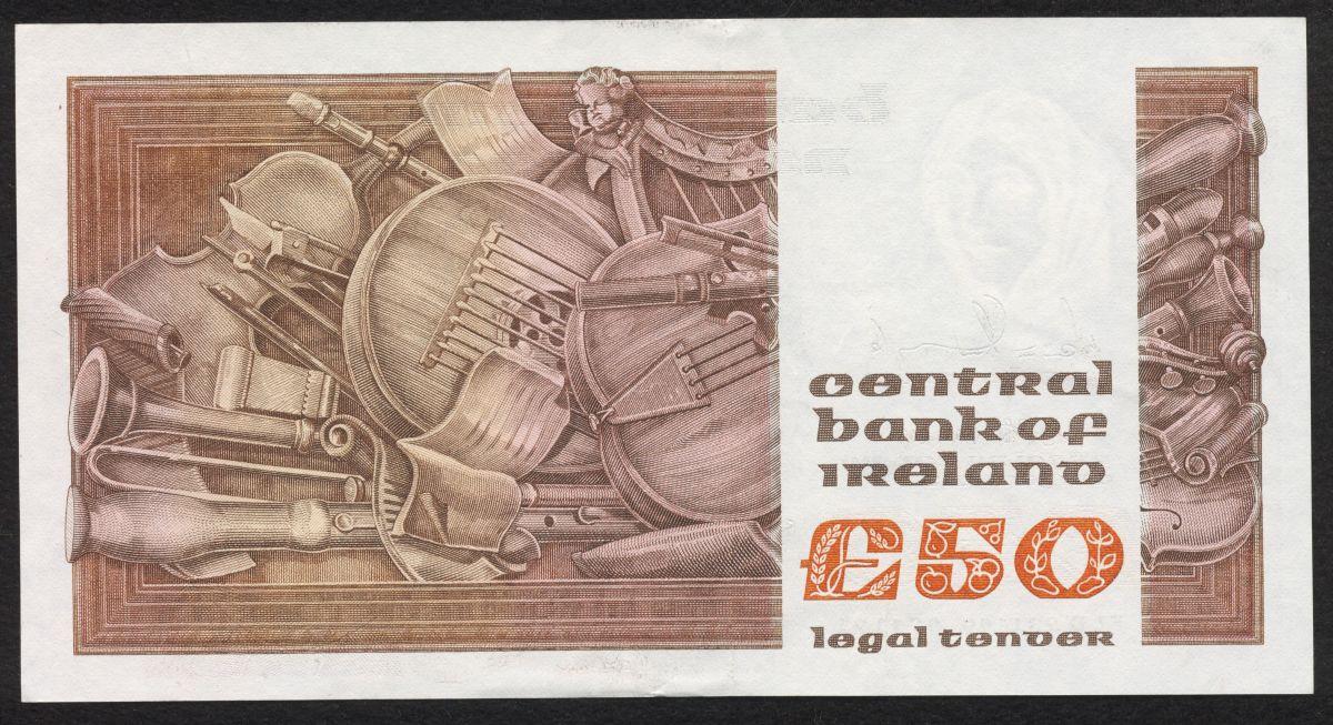 High denomination 50 Pound issue of 1991 with musical motif's front and back. An original extremely Fine note, P-74b that catalogues $300 US.