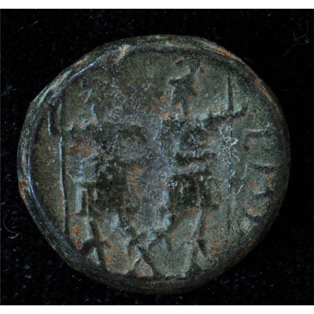 Chalkis (85-40 BC) - AE-19 Coele-Syria Obv: Laur. hd of Zeus r. Rev: Two warriors facing , holding spears partial legend, 6.7 grams S-589, Very Fine.