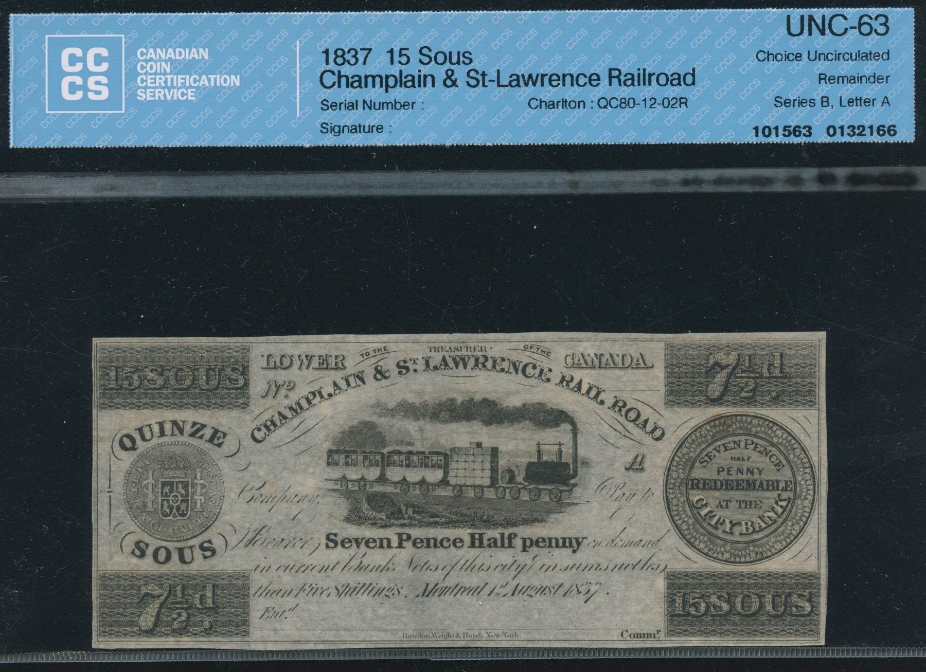 CH 80-12-02R. Remainder in uncirculated condition. CCCS Unc-63.
