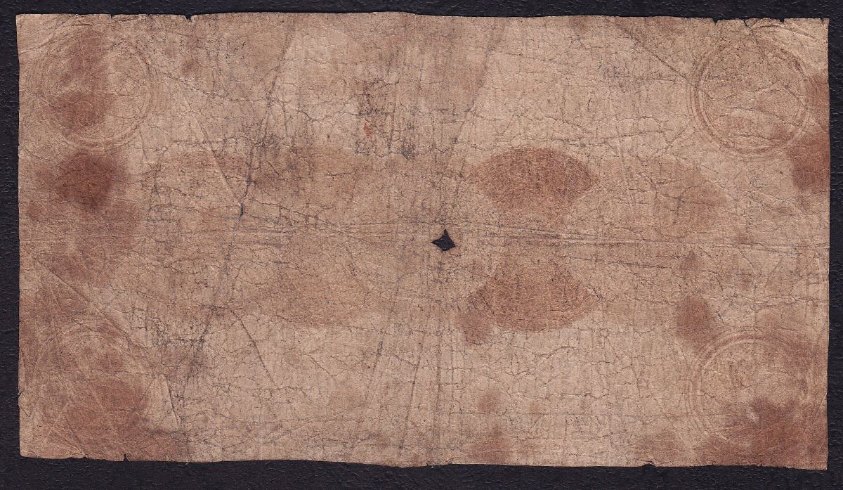 CH 100-10-02. Fine, hole at center and stains. Bold printing and signatures. 13 on the registry, 2 of which are in institutional collections. S/N:15607.