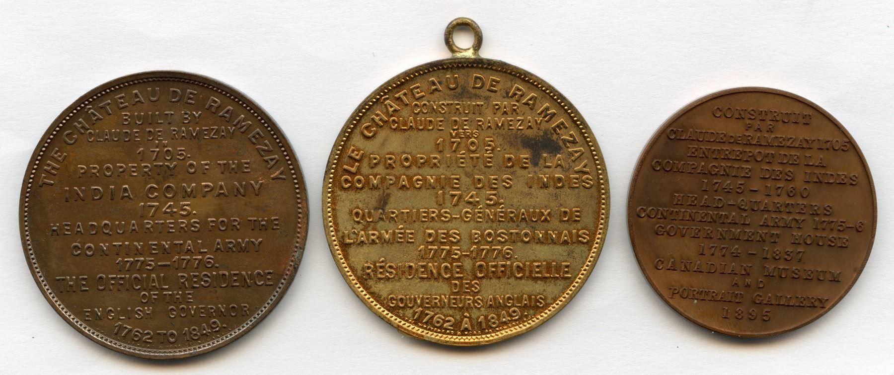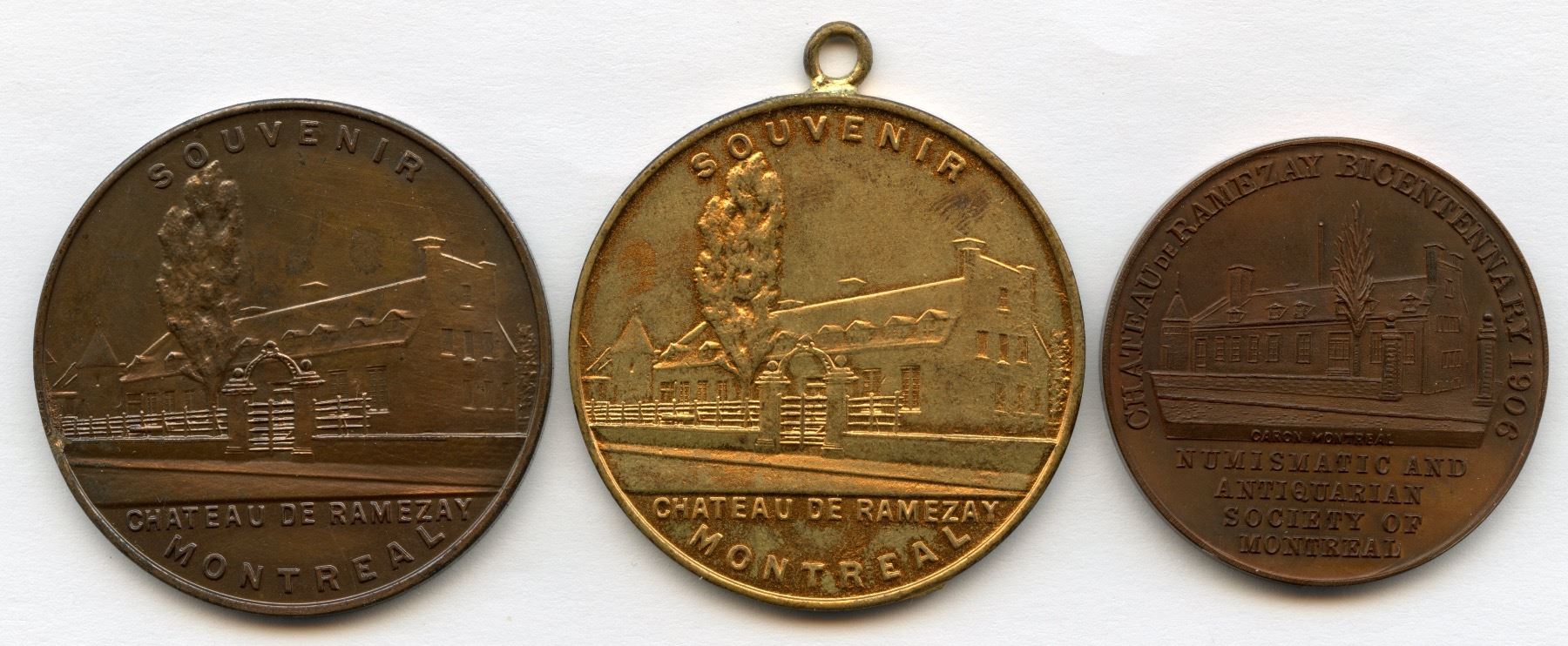 1906 Numismatic and Antiquarian Society of Montreal, Chateau de Ramezay Bicentennial, Bronze, Unc. Lot of two Montreal souvenir Chateau De Ramezay, french legend, gilt bronze & english legend in copper. 3 pcs.
