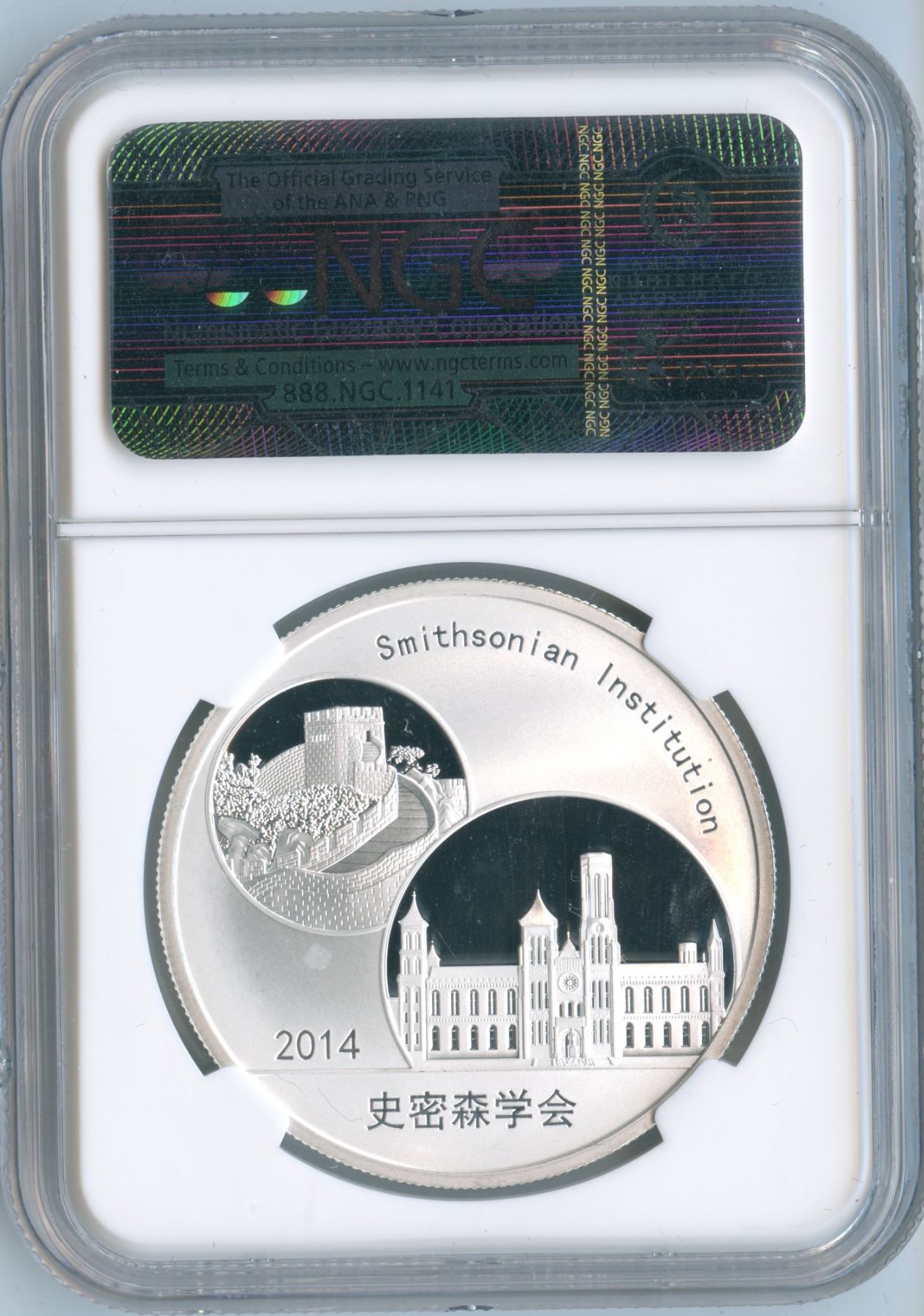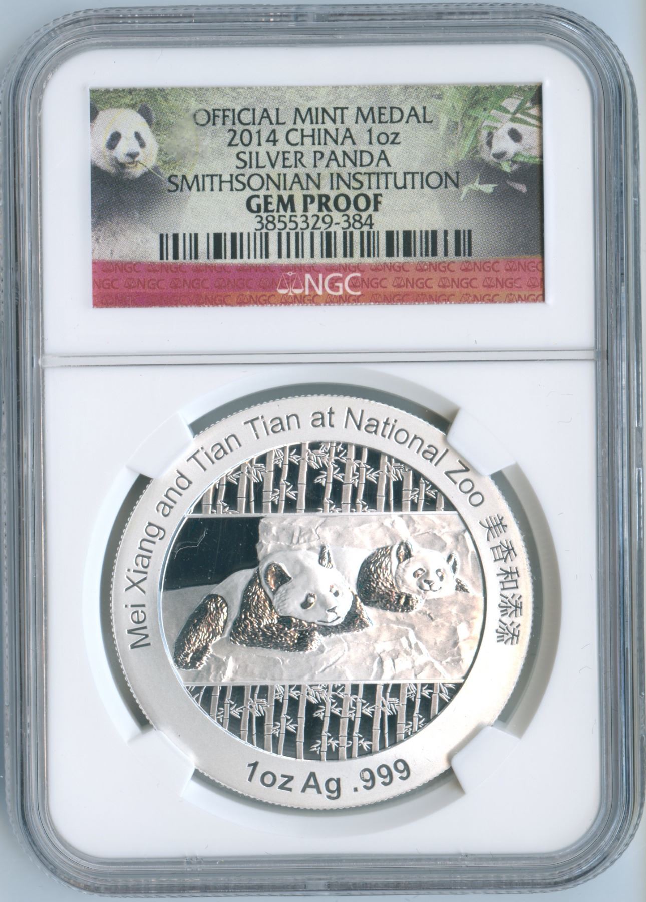 NGC Gem Proof. Official mint medal. 2014 China 1oz silver panda. Smithsonian Institution.
