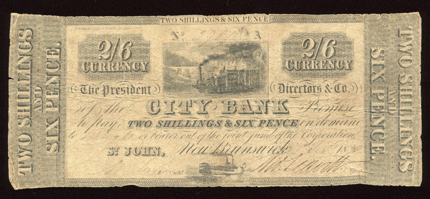 City Bank, St. John N.B., Two Shillings & 6 Pence, 1838
