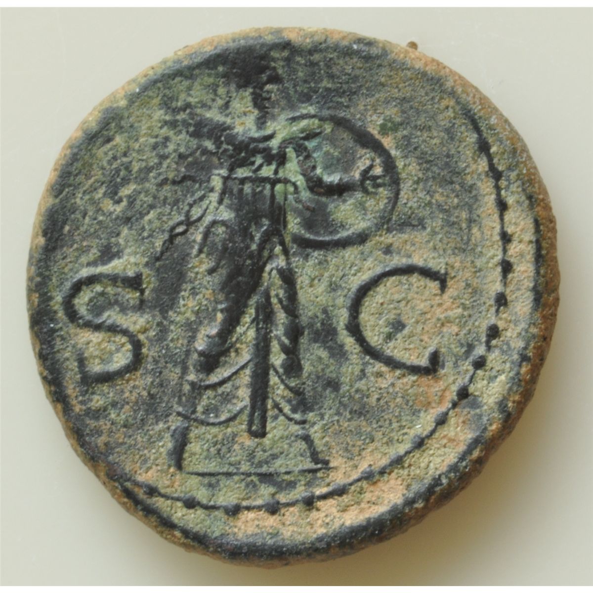 Claudius (41-54 AD) - AE-As Rome 41-42 AD. Obv: Bare hd, of Claudius l., TI CLAVDIVS CAESAR AVG P M TR P IMP. Rev: Minerva advancing r., branching spear and holding shield. 12.6 grams S-1861. VF.