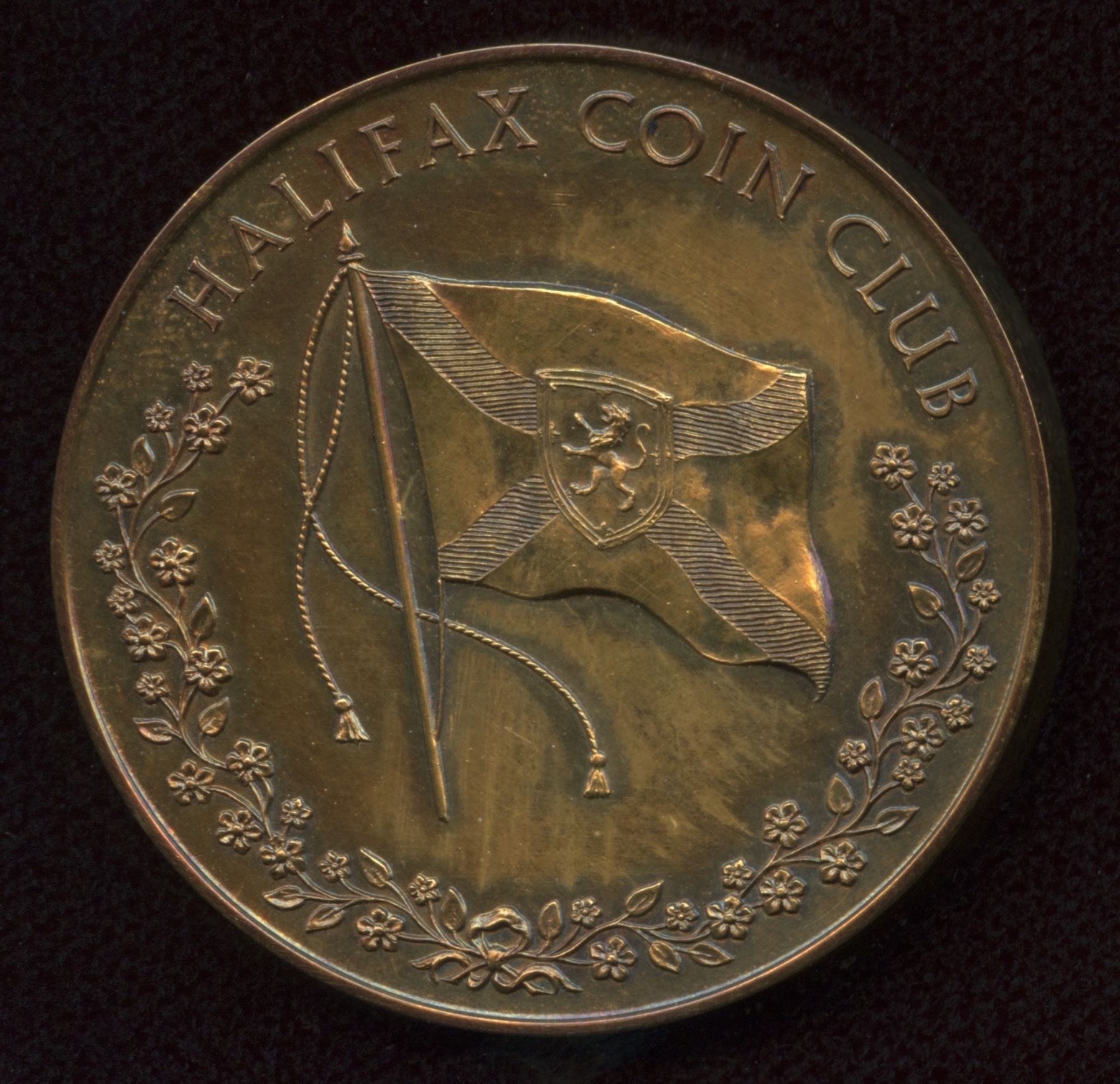Halifax Coin Club 1961 gold medal. This is one of the earliest club medals issued weighing 54.3g of 9kt gold in original case of issue. Another interesting feature is that is was produced by the Royal Mint in England.