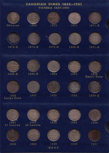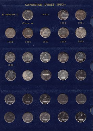 Collection of Ten Cents Lot includes 1858 through 1978, including many varieties, excluding 1872H & 1889. Worthy of close inspection. 109 Pcs.