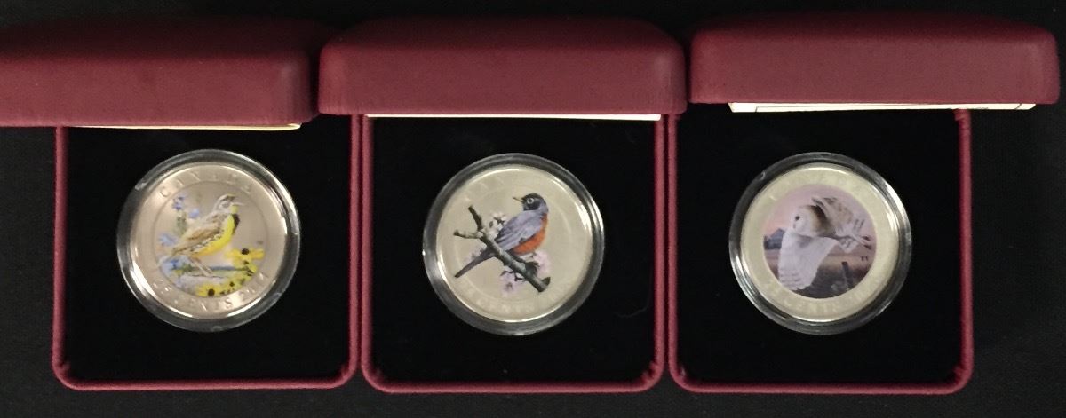 Coloured Birds of Canada 25-Cent Coins - Lot of Three