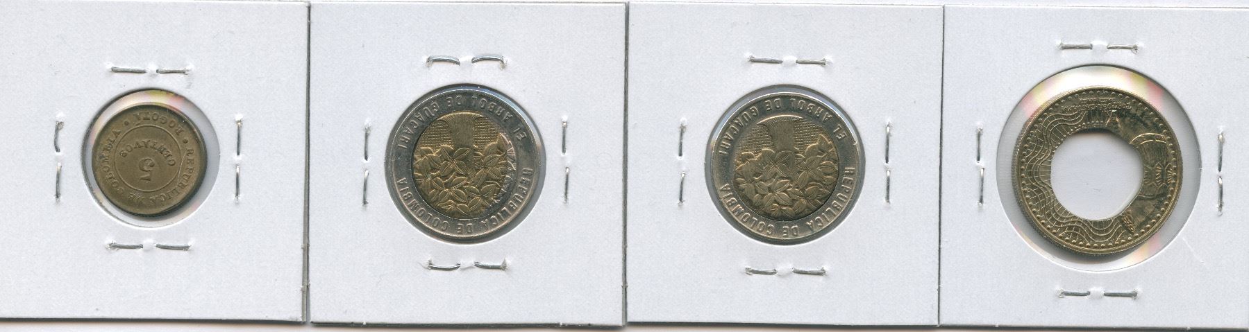 Lot of 4 significant errors from Columbia. One is an off-centre struck on Inflationary coinage from 1901, mint state, and with a mintage of only 15,000 it is likely unique. The other 3 coins are very appealing bimetallic striking errors Patrick Glassford Collection.