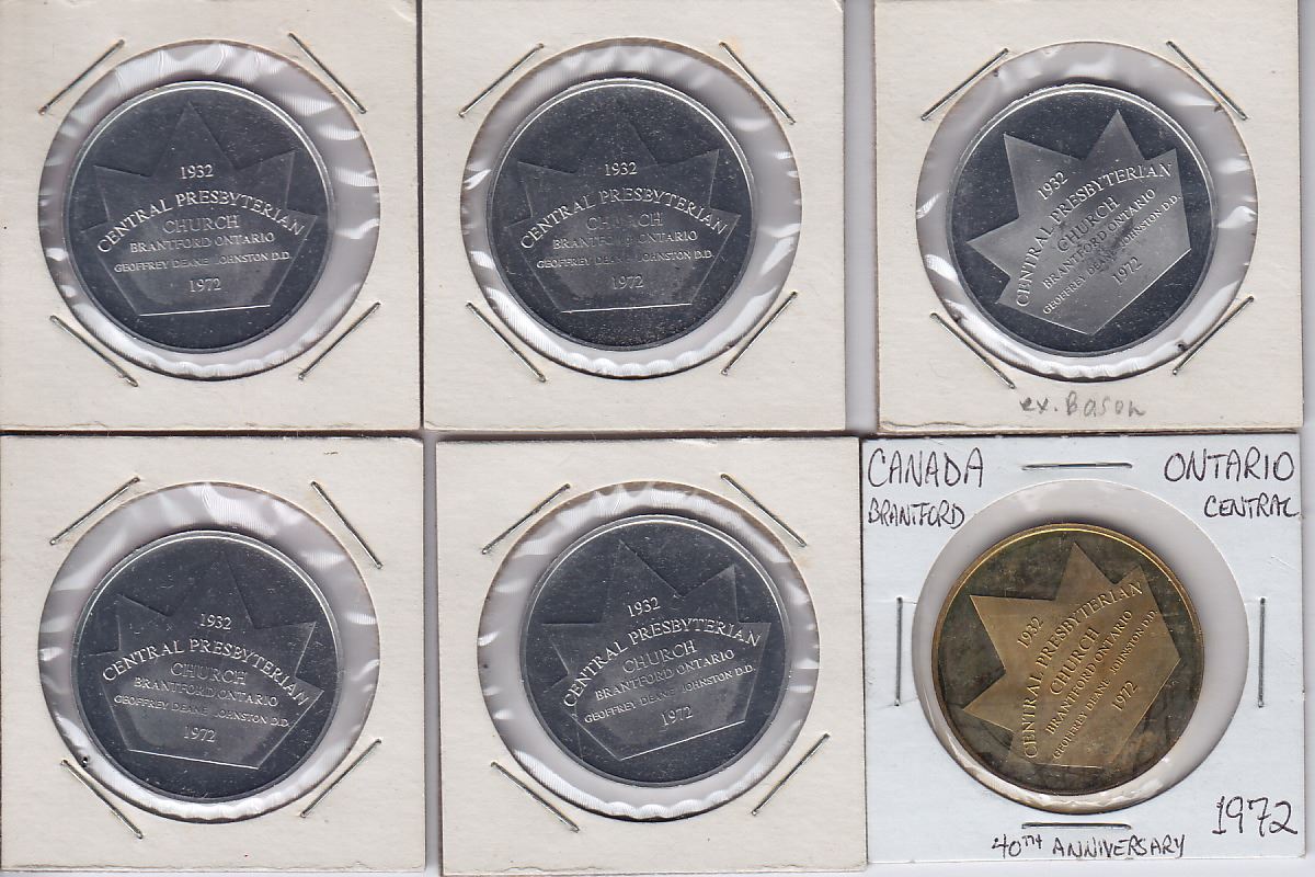 Brantford, Ontario - CH CT-1972A1, Al (5), 1000 issued; CH CT-1972A2, Brass, 75 issued. 6 Pcs.