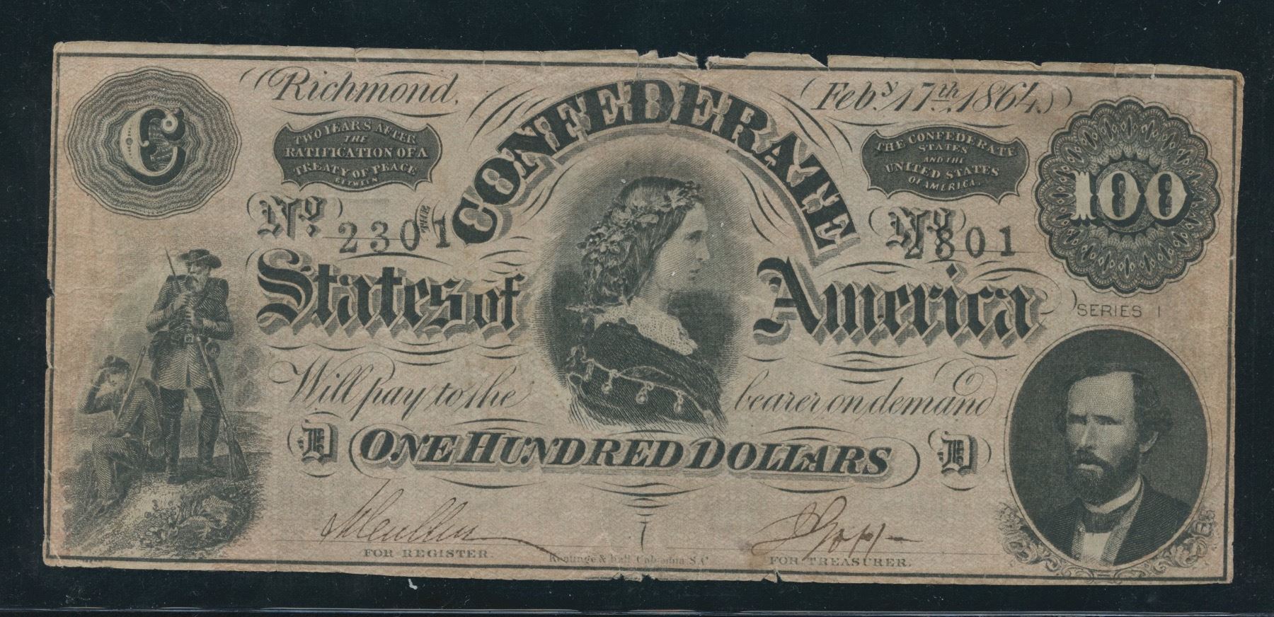 S/N:2301, Series 1, pp D, by Keating & Ball. Type 65, CR-493, PF-2. F-VF, 2cm tear at bottom, rough edges.