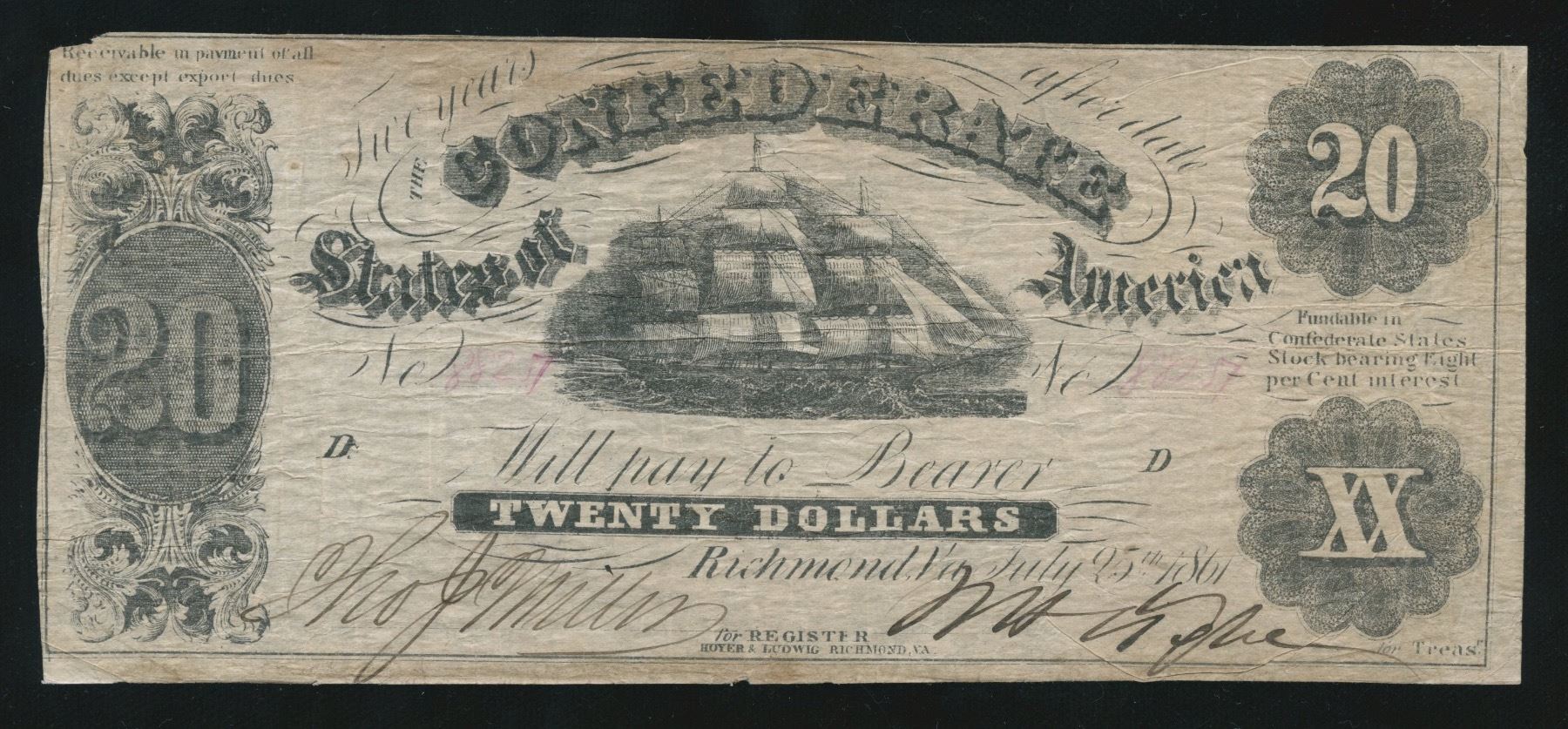 Confederate States of America, $20, July 25th, 1861