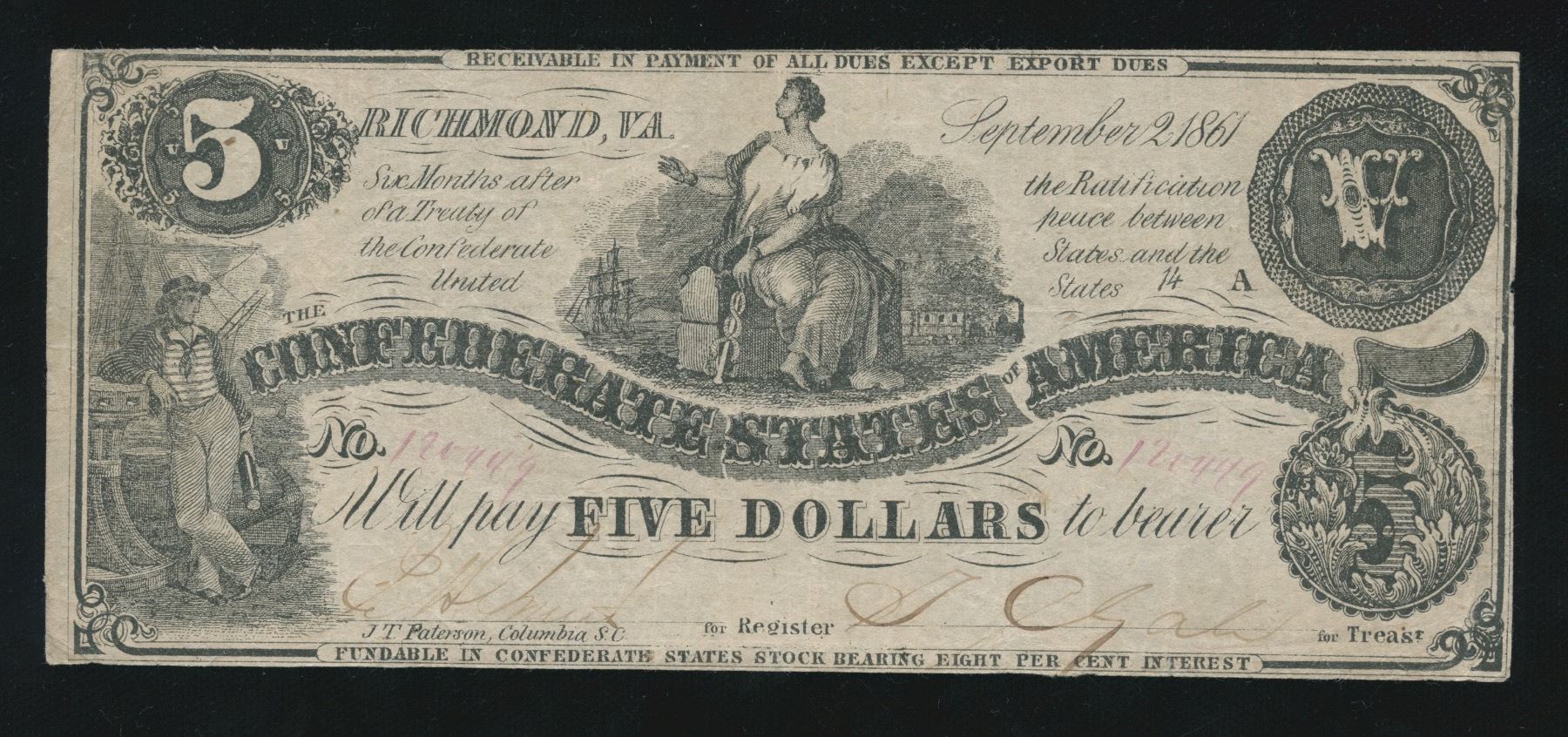 S/N:120449, pp 14, by J.T. Paterson. Type 36, CR-274, PF-2. VF, no pinholes or tears.
