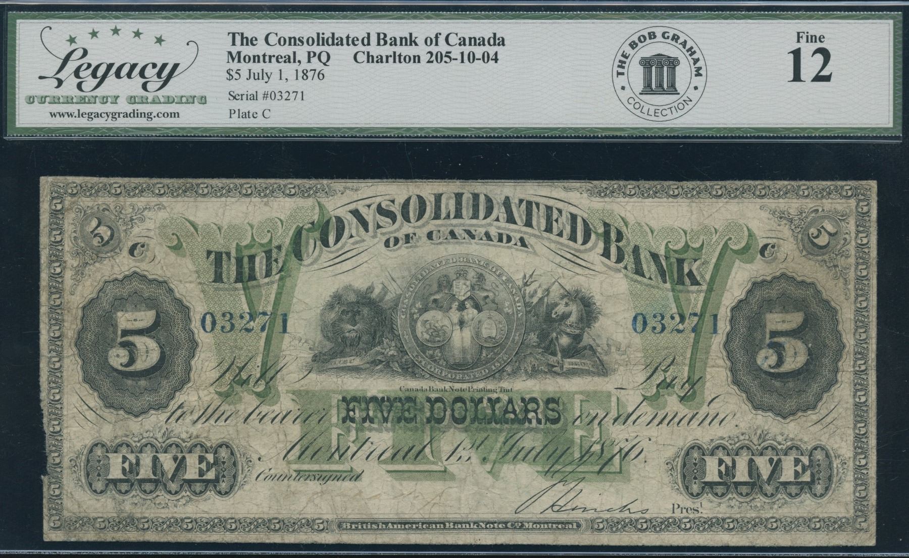 CH 205-10-04. Legacy Fine 12. Only 10 on the registry, not priced higher in Charlton. S/N:03271/C.
