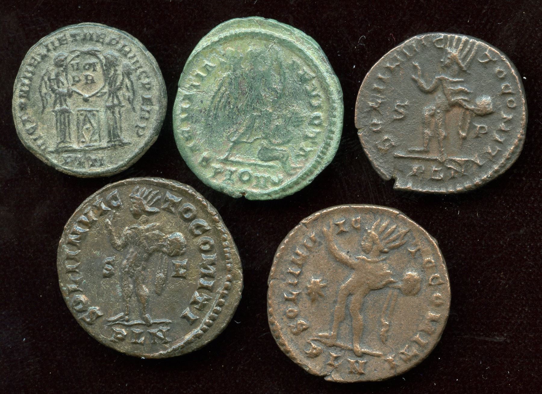 RIC 514; aVF (2.85g) || RIC 289; VF, rough surfaces (2.72g) || RIC 111; aVF, pitting on obv (3.30g) || RIC 279: VF (3.11g) || RIC 11; gVF (3.76g). 5 Pcs.